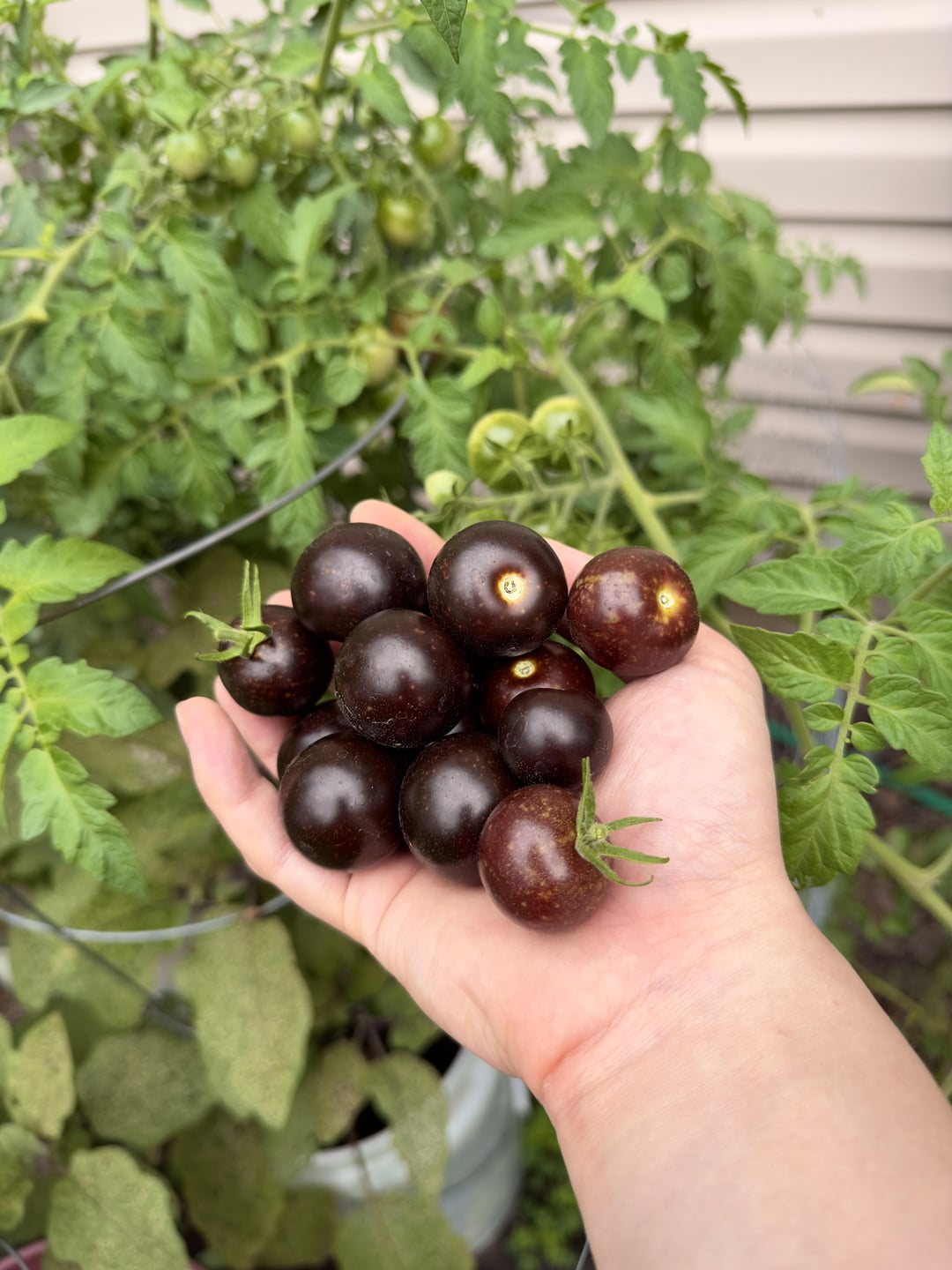 父は小さなトマトの収穫を分けてあげたい