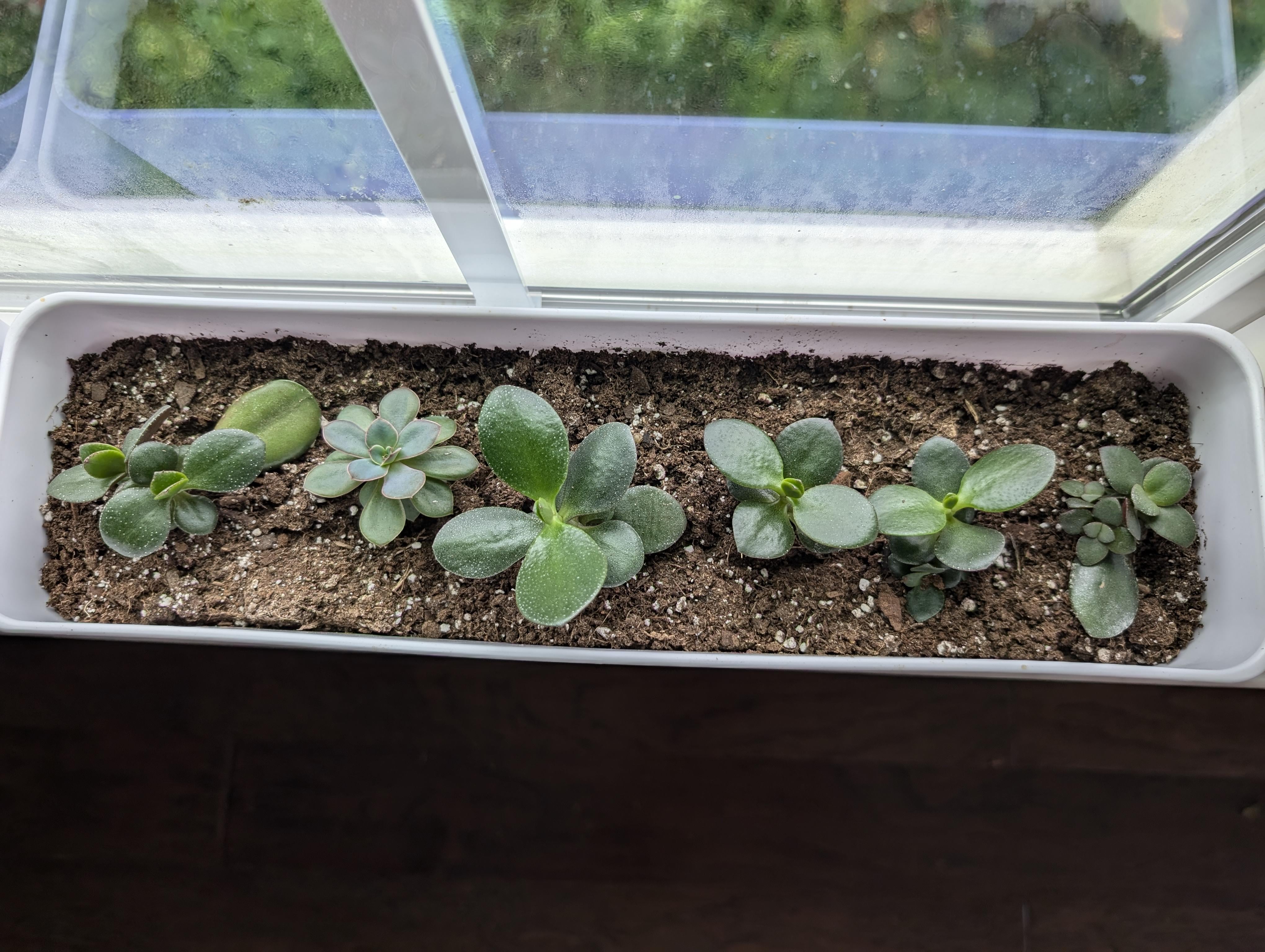 ここまで来るのに何ヶ月もかかりました。予想していたよりもずっと長かったですが、すべて落ち葉から育てたものです。ようやく、成長したリーのものではなく、赤ちゃんの多肉植物のように見え始めています。