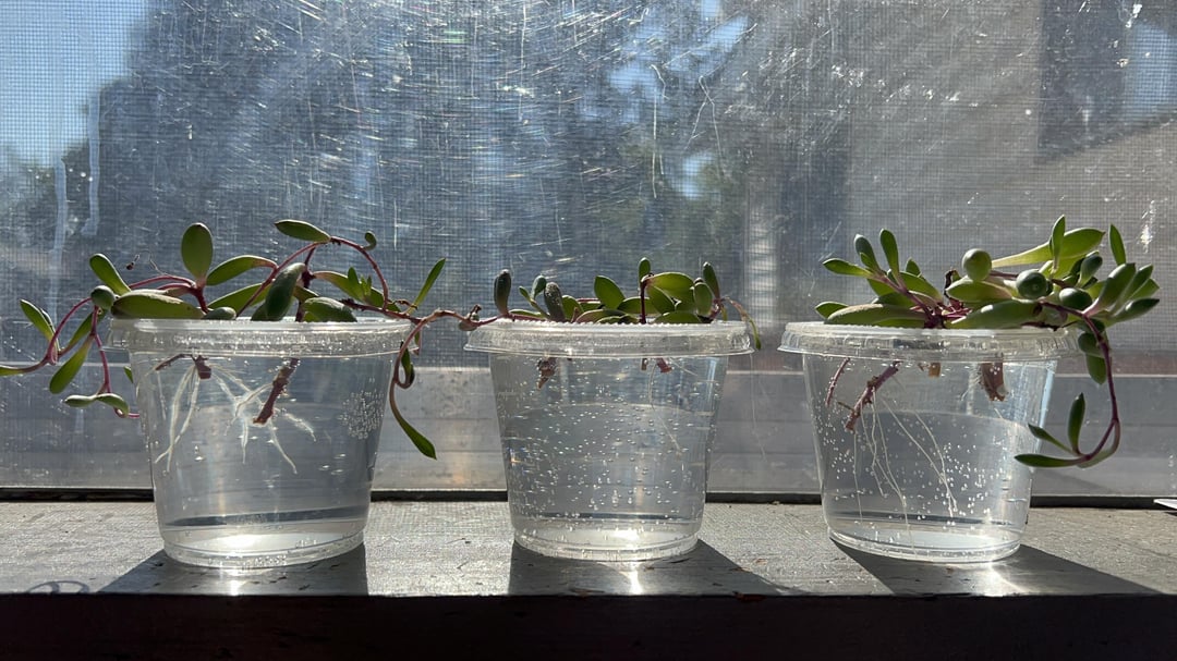 初めて増殖に挑戦しました。土に植える前に根が伸びるまで待つように言われました。水に浸すとすぐに成長しました。植えるのを待ちすぎたのではないかと心配です。写真は撮っていませんが、最後の写真では根が容器の底にほぼ達していました。皆さんはどう思いますか?
