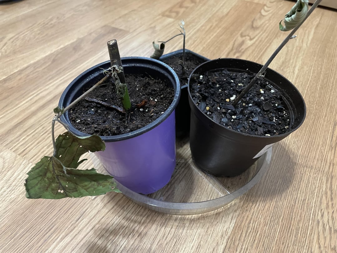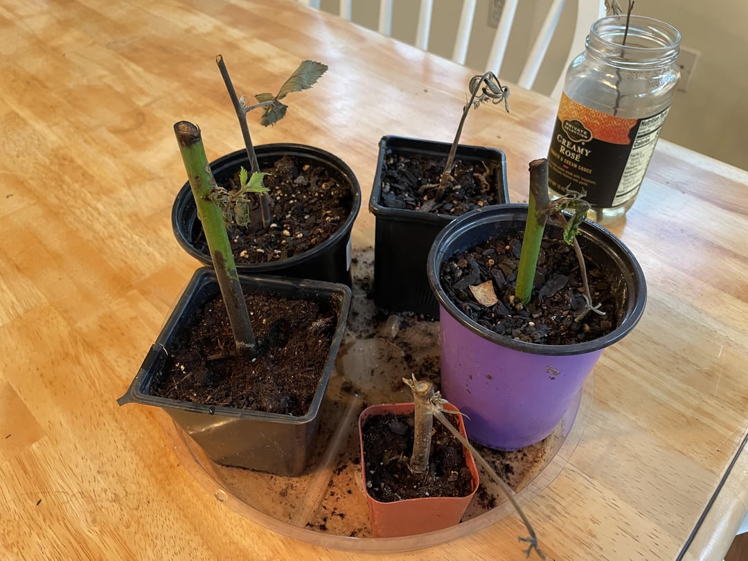 いくつかの記事を読み、いくつかのビデオを視聴しました。 複数の媒体、場所、光レベル、温度を試しました。 発根ホルモンを使用。 毎日チェックして、土壌を「湿っているが、湿っぽくない」状態に保つように努めました(ビデオや記事で示唆されているように)。 それでも、最初は少し新しい芽を押し出していたにもかかわらず、ほとんどすべての支柱が黒くなり、枯れてきています。 何かが足りないのですか??