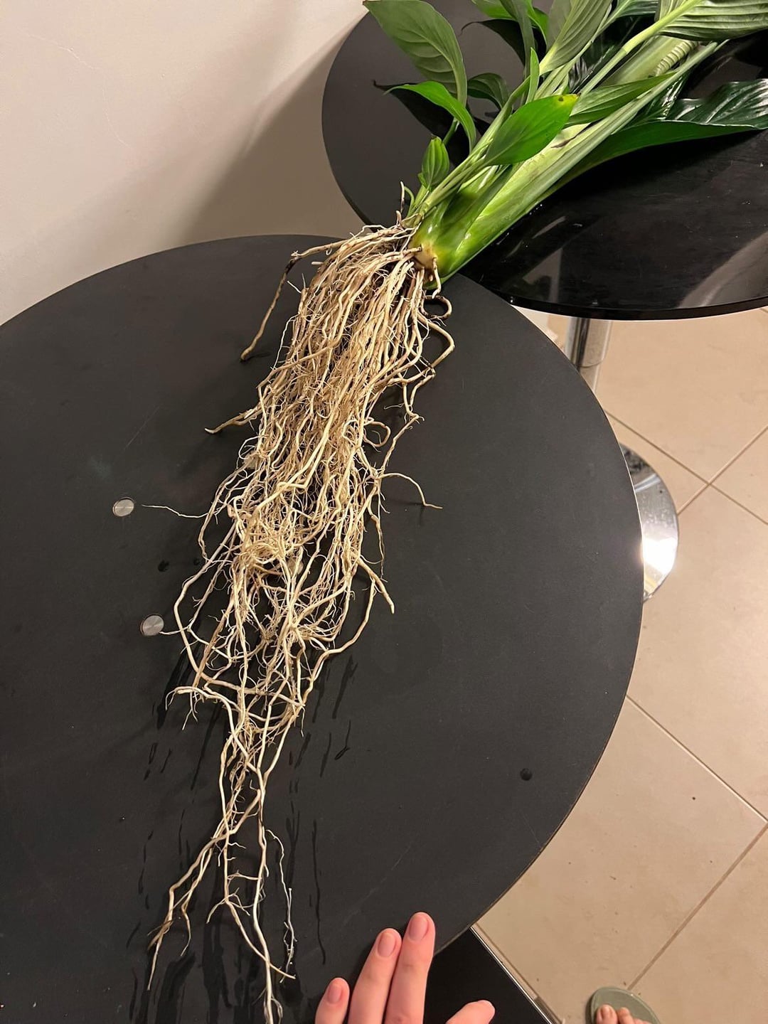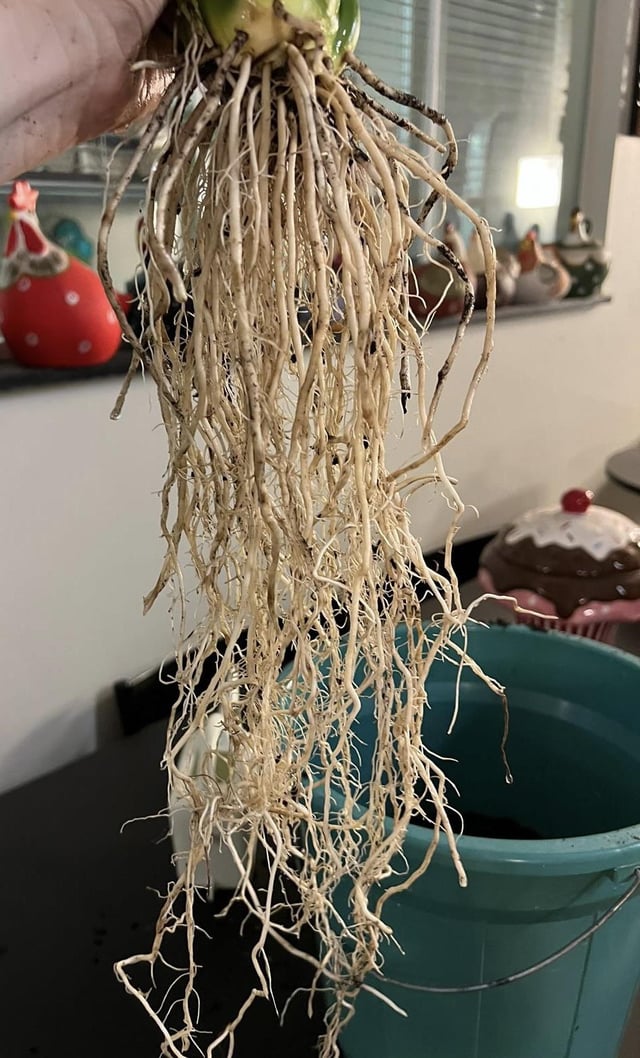 私のスパティフィラムは、土がとても固くなっていたので剪定して植え替えようと思いつくまでは美しく巨大でした。しかし、1週間後には萎れて垂れ下がり始めました。最初は剪定と植え替えによるショック状態だと思ったのですが、今日、回復を助けるために葉を何枚か切っていたところ、植物全体が株から持ち上がり、ほぼ100%の根が黒く柔らかくなり、少し臭くて緩んでいることがわかりました。根がたくさんあったのに、今では3つしか残っていないので、いまだにぞっとします 😭 ビフォーアフターはとても悲しいです。根が繁殖することを期待して水に入れましたが、かわいそうなものにはあまり期待していません。