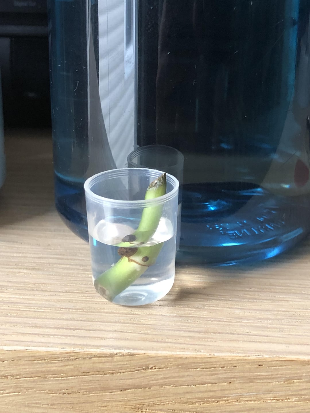昨日、ポトスの株から切り取ったのですが、生き残ることを祈っています。