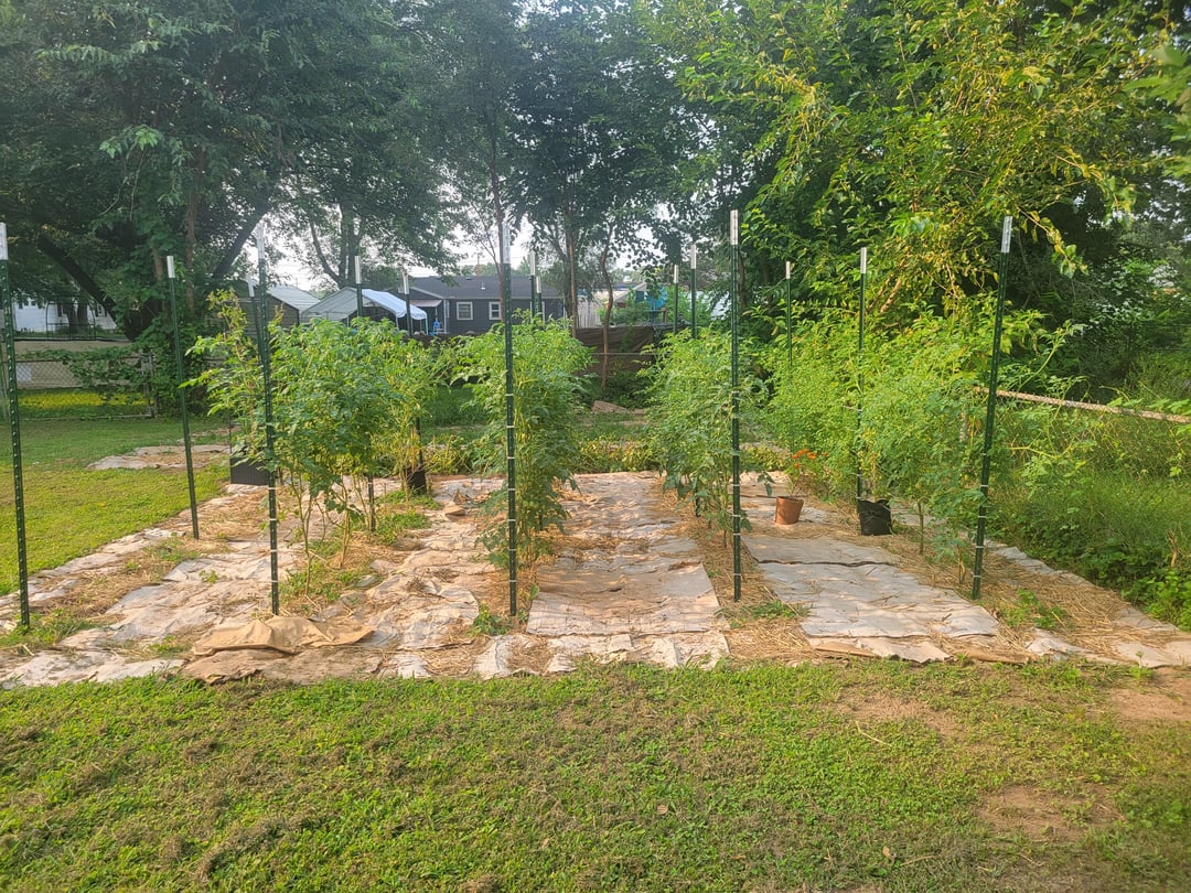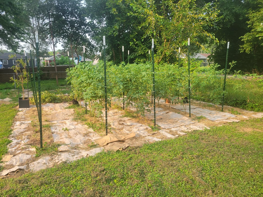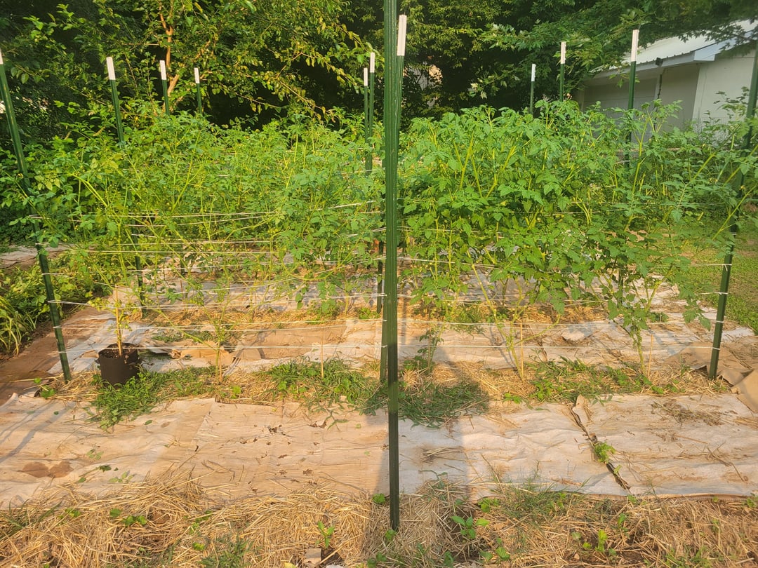 私のトマトの苗のうち 1 本 (左側) が他の 3 本 (右側) と同じ大きさになっている写真を共有しようと思いました。すべて同じ施肥スケジュールで植えましたが、根に余裕ができたので大きく育ったのだと思います。来年は投稿の合間に 1 本だけ植えてみようと思います。追伸: 最初の苗の後ろに他の苗が隠れているため、写真が悪くて申し訳ありません。また、細菌性疾患を抑えるために、写真の前にかなり剪定しました。