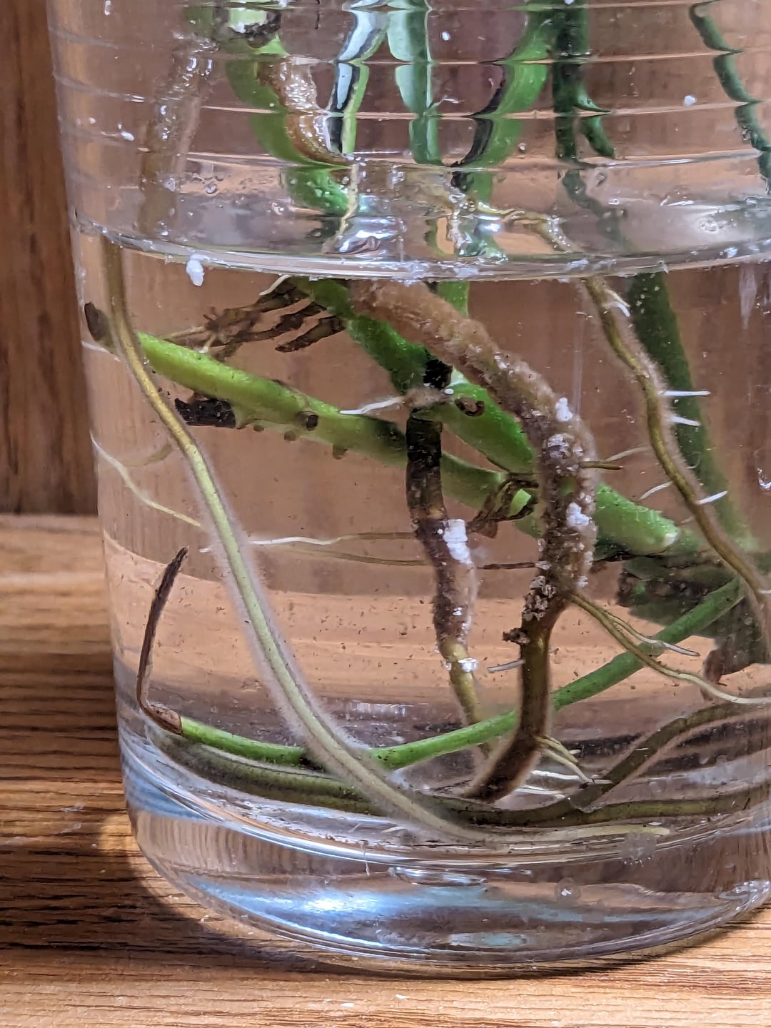 それで、少し前に、近くの Facebook マーケットプレイスの販売者から驚きの伝播パックを受け取りました。 彼のアドソンニーは、さらに根を張るのにまだ少し時間が必要ですが、とても太くて毛が生えているように見えます。 それはある種の真菌ですか、それとも正常ですか? (白い塊はパーライトの破片です。これを取り除くことが発芽した根に悪影響を与えるかどうかはわかりませんでした)