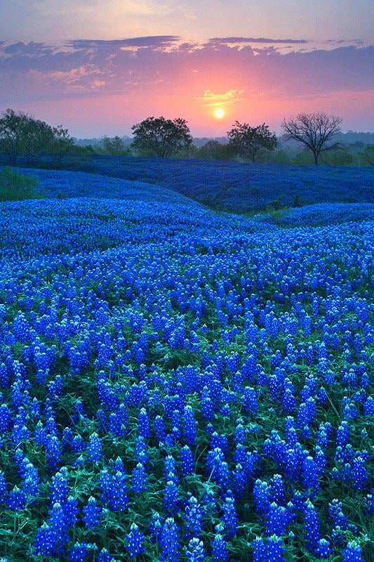 美しいブルーボネットの花畑 – テキサス州エリス郡。
