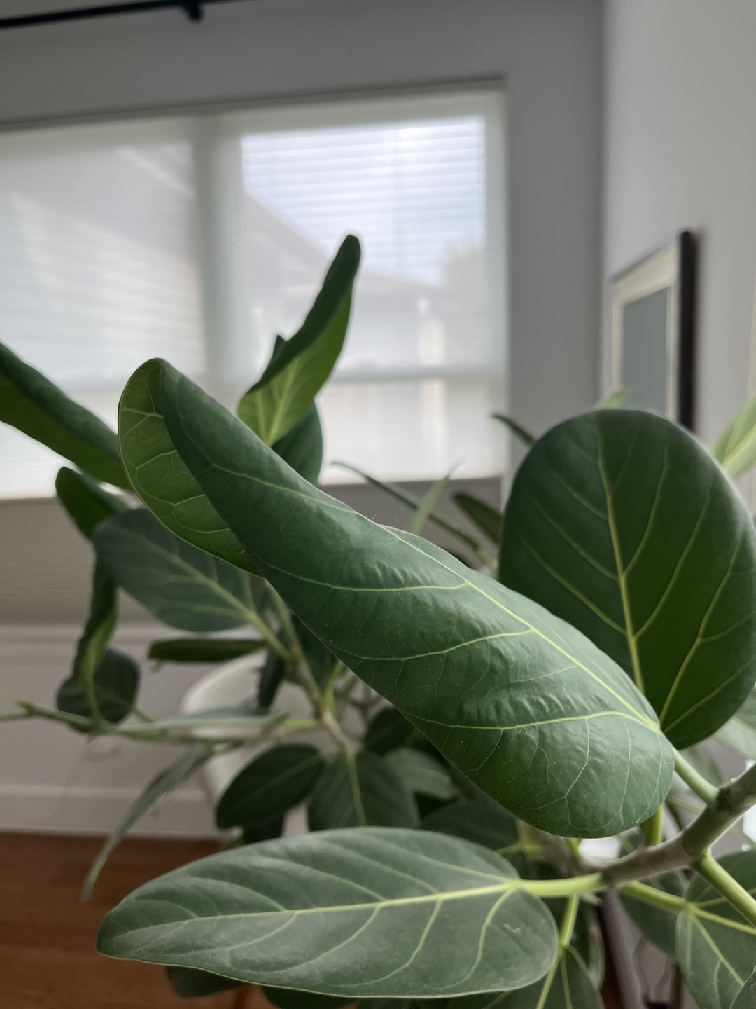 約 1 か月前に、水やりのしすぎが原因となる可能性があると読んだので、水やりの頻度を減らし、土の表面 3 ~ 4 インチが完全に乾いたときにのみたっぷりと水をやるようになりました。 これらの葉は最終的に平らになるのでしょうか、それともこれを引き起こす何か他のことが起こっているのでしょうか?