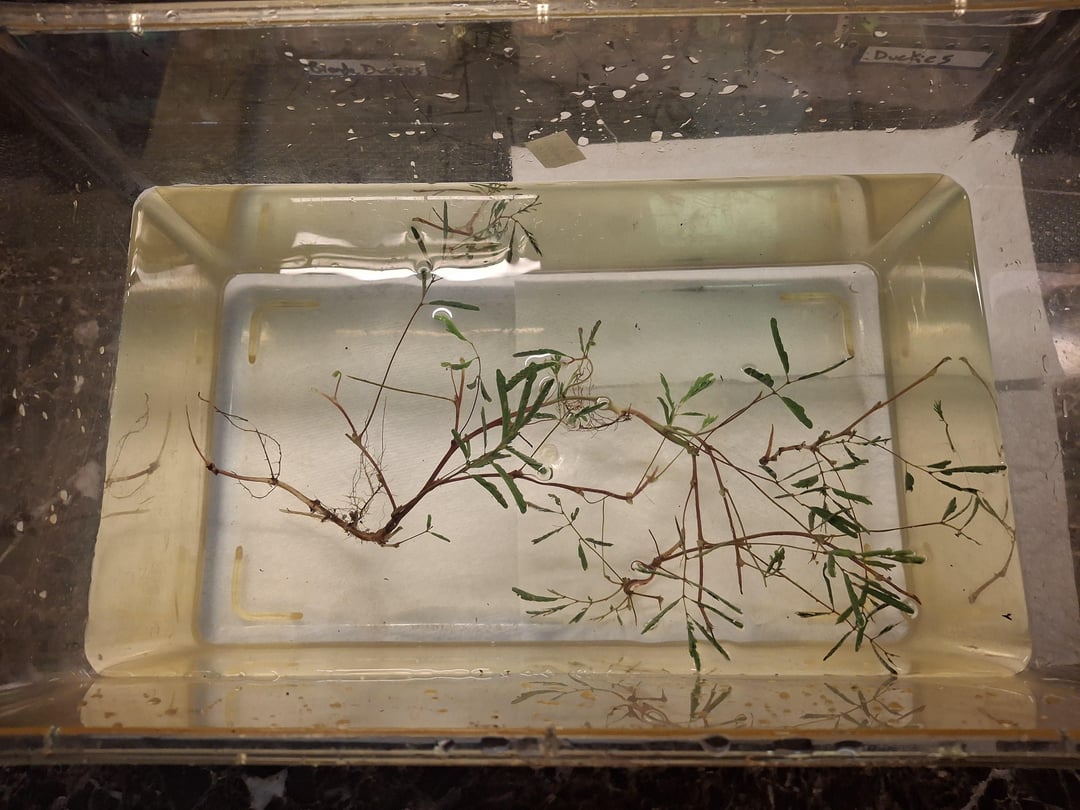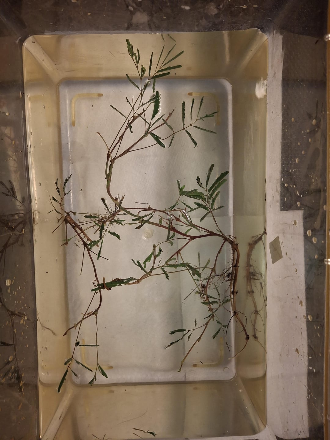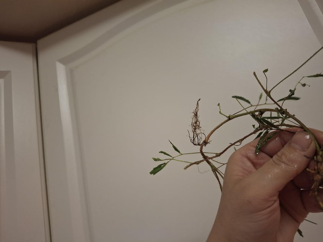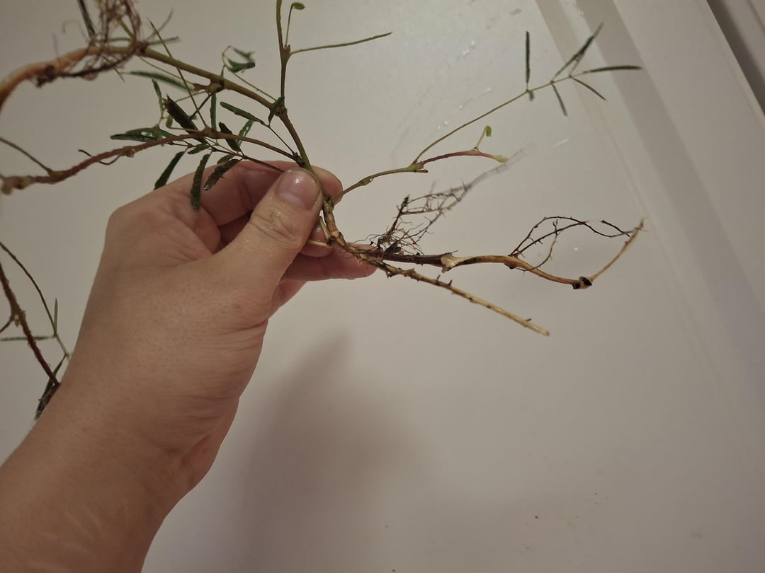 今、それらは洗われて水に浸されており、鉢植えにする前に(または水に入れる前に?)漂白剤でさっとすすがれ、害虫を殺します。写真を見ると、根と葉の比率がわかります!もちろん、今はすべての葉が閉じています。