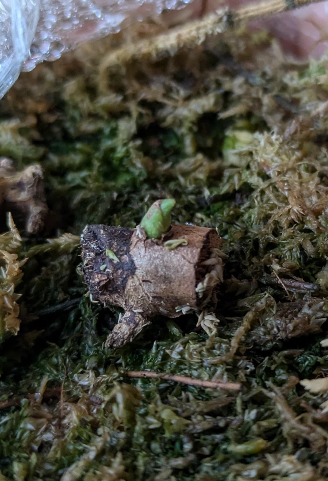 これはフロリダ ゴーストです。湿ったスパンナムの上に置きました。成長点が成長して止まりました。緑が苔に接触している必要がありますか? それともこれで大丈夫ですか。特に根の成長はありません。