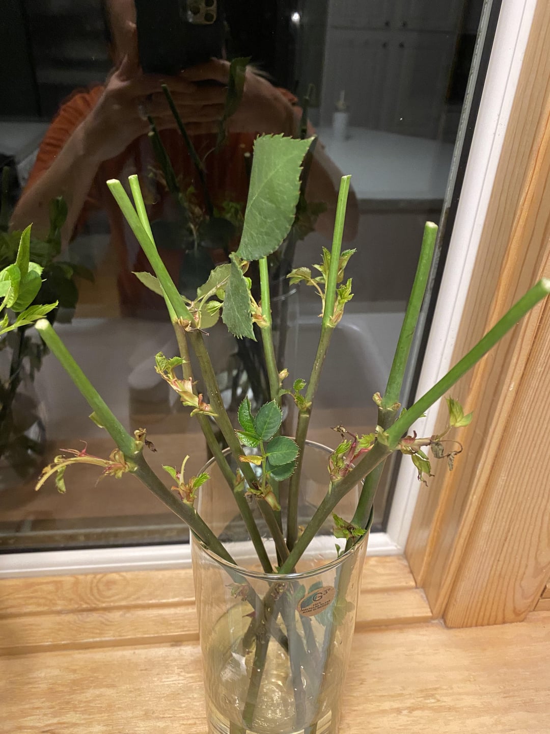 こんにちは、みんな! 今月初めに白いバラの花束を 2 つ受け取りましたが、どちらも過去 2 週間で新しい葉が芽吹き始め、一方の花束はもう一方の花束よりもかなり良くなりました。 私はこれまでに何かを繁殖させようとしたことはなく、特にグリーンサムを持っているわけではありませんが、これらの本当に有望な芽を無駄にするのは残念に思えました。 ここでは元気そうなので、今夜バラの頭を切り落とし、茎の端を切り直して、日当たりの良い窓辺に置いておきました。 私の質問は、次に何をすべきかということです。 私は簡単なルートが大好きだということを覚えておいてください!