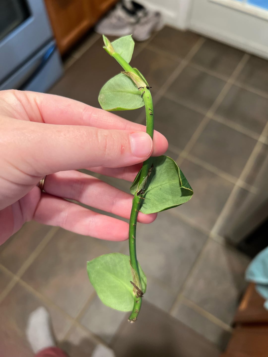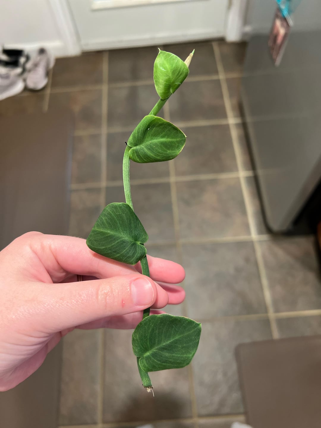 改装された家から斑入りのツタを引っ掛けた