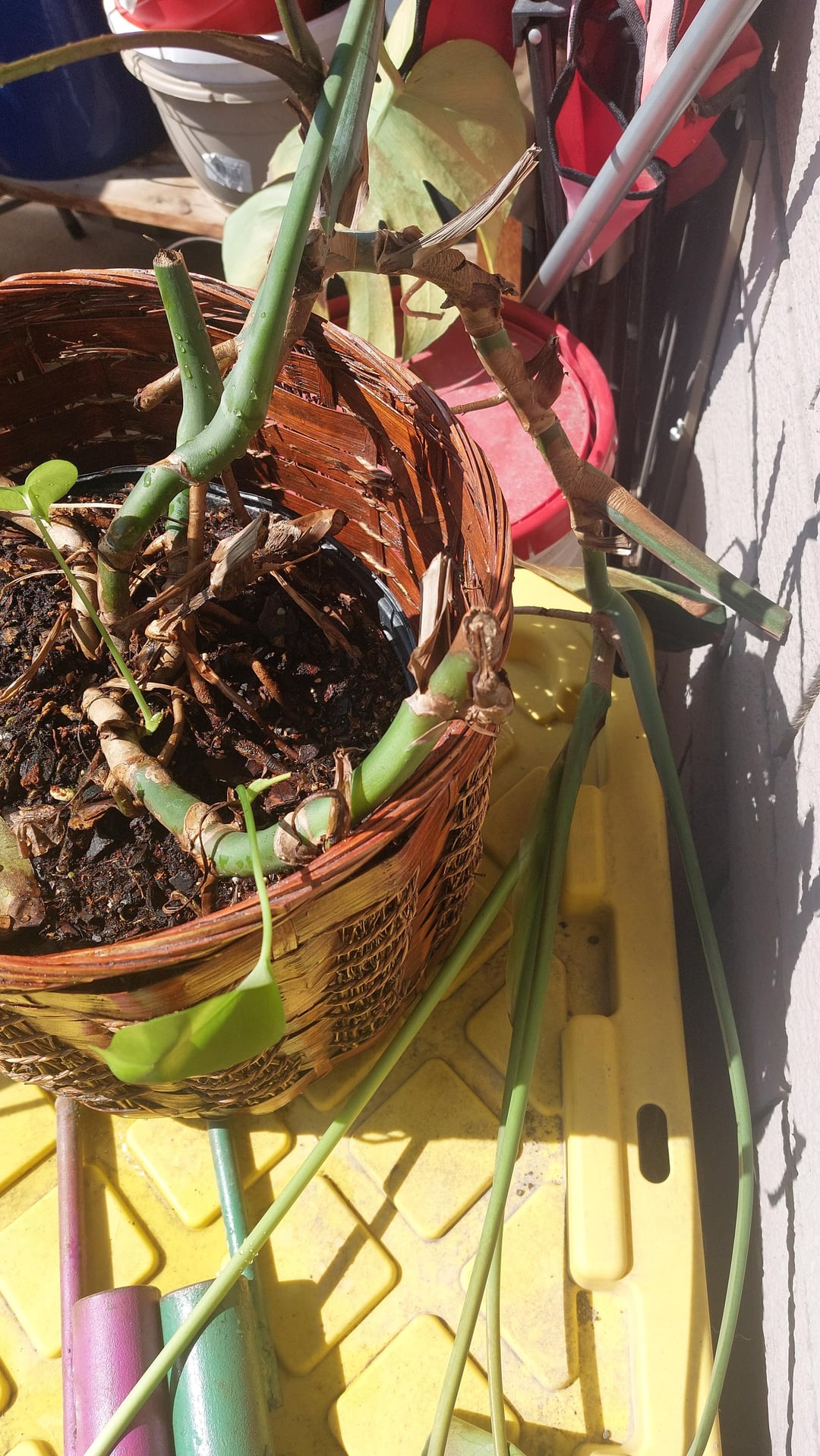 縁石に投げ捨てられたこの植物を見つけました。 まず、それは一体何なのでしょうか? 次に、もっとふさふさして安定したものに作り変えることは可能でしょうか? 写真 3 に示すように、しばらく前に下葉の多くが切り取られたようです。かなり倒れていますが、健康そうです。 捨てたほうがいいのでしょうか?何かできそうな気がします。 次のステップについて、プロからのアドバイスをいただければ幸いです。 現在はバルコニーに置いてありますが、必要なら室内に取り込むこともできます。