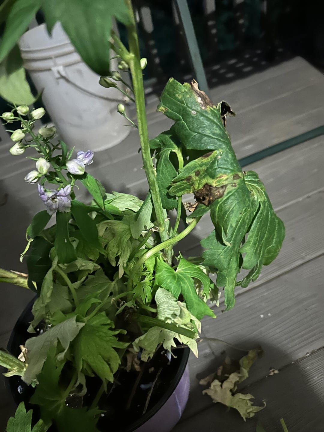 このかわいそうな子に何をしたのか分からないけど、本当にひどい見た目だ😭腐ってるのかな?葉っぱに一体何が起こっているんだ?誰かアドバイスや提案があれば私に残してほしい。おばあちゃんがまだ生きていたらよかったのに。彼女はデルフィニウムが大好きで、このかわいそうな子に何をしたのか絶対に教えてくれただろうに