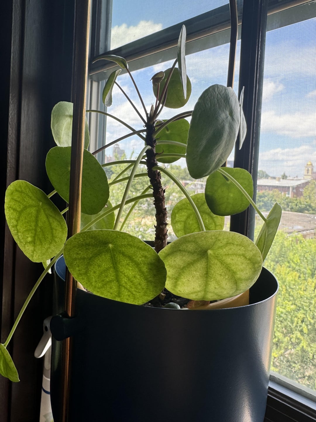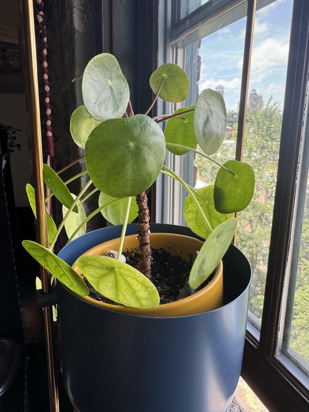 私の中国のマネープラントはすばらしく育っていました。それから、下の葉が明るい緑色に変わり、ずっと透明になっていることに気がつきました。助けてください!(そう、キノコも生えてきました。水をやりすぎたのかもしれません?)