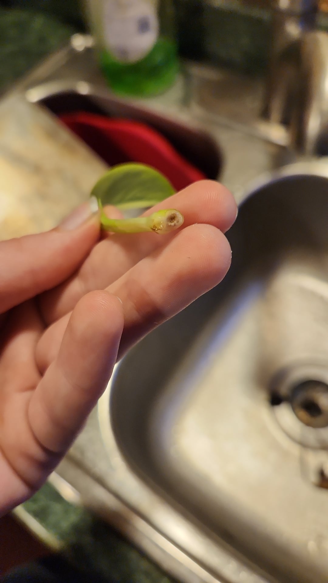 文脈を説明すると、これを誤ってノードの下ではなくノード上で切り取ってしまったのだと思います。 私の叔父はこの植物を飼っていて(それがどんな種類の植物なのかは100%わかりませんが)、何年も育てようとしてきましたが、実際には成長しませんでした。 元気な葉から繁殖させて、元気な葉をたくさんつけた植物を作ってプレゼントしたいと思ったのですが、ガーデニングや植物には全くの初心者なので、節の下で切らなければならないとは知りませんでした。 伝播には 2 つのオプションがあります。1 つ目 (最初の 2 つの画像) はノード上で直接カットされ、2 つ目 (最後の 2 つの画像) はノードの少し下でカットされます。 2本目は「葉」がたくさん茂るのかなと期待していましたが?
