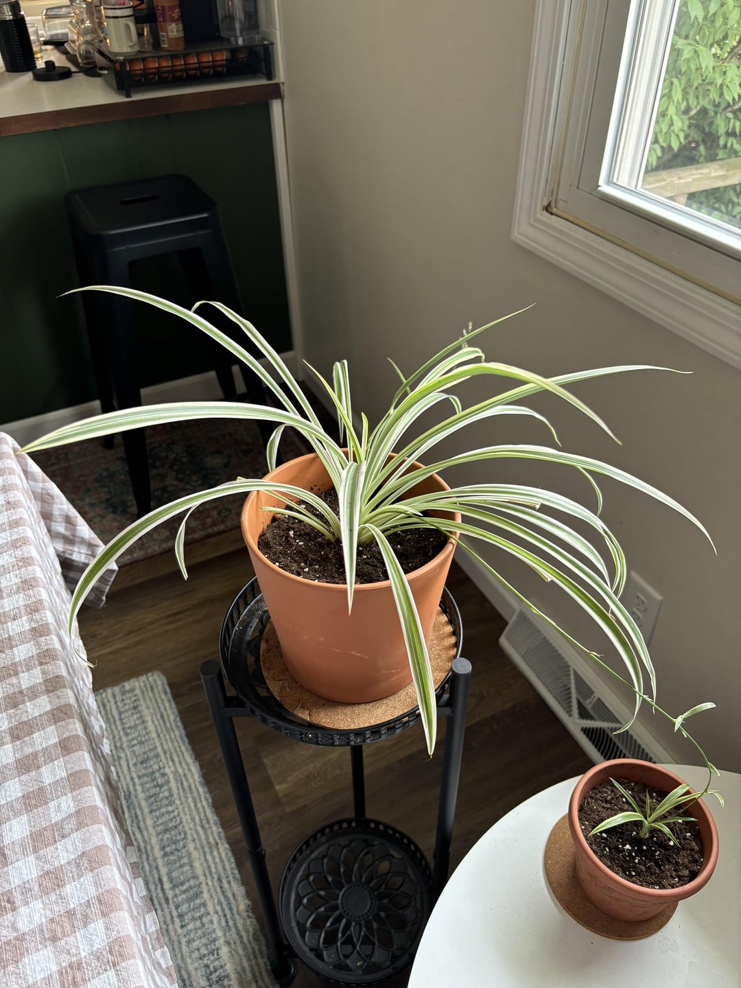 こんにちは、 植物を繁殖させるのは今回が初めてで、へその緒で支えるという話を耳にしました。この植物ではそうしました。いつ切ったらいいでしょうか? 切ってもいい状態ですか? (母植物と子植物の写真を添付) アドバイスがあれば、ぜひお願いします!