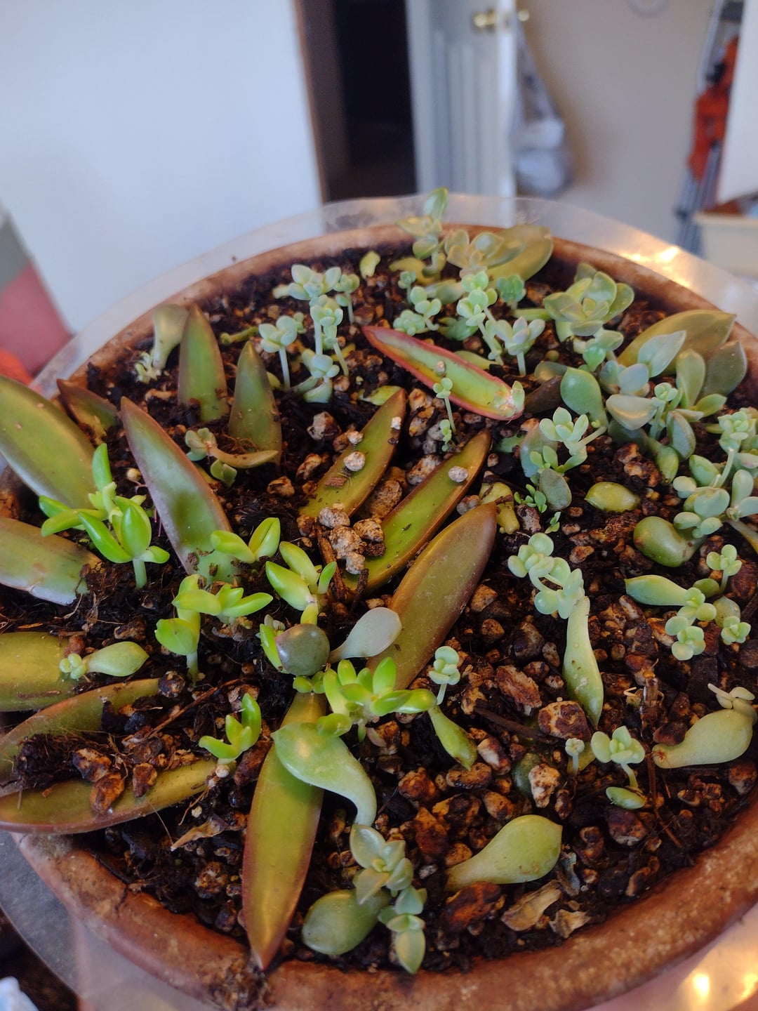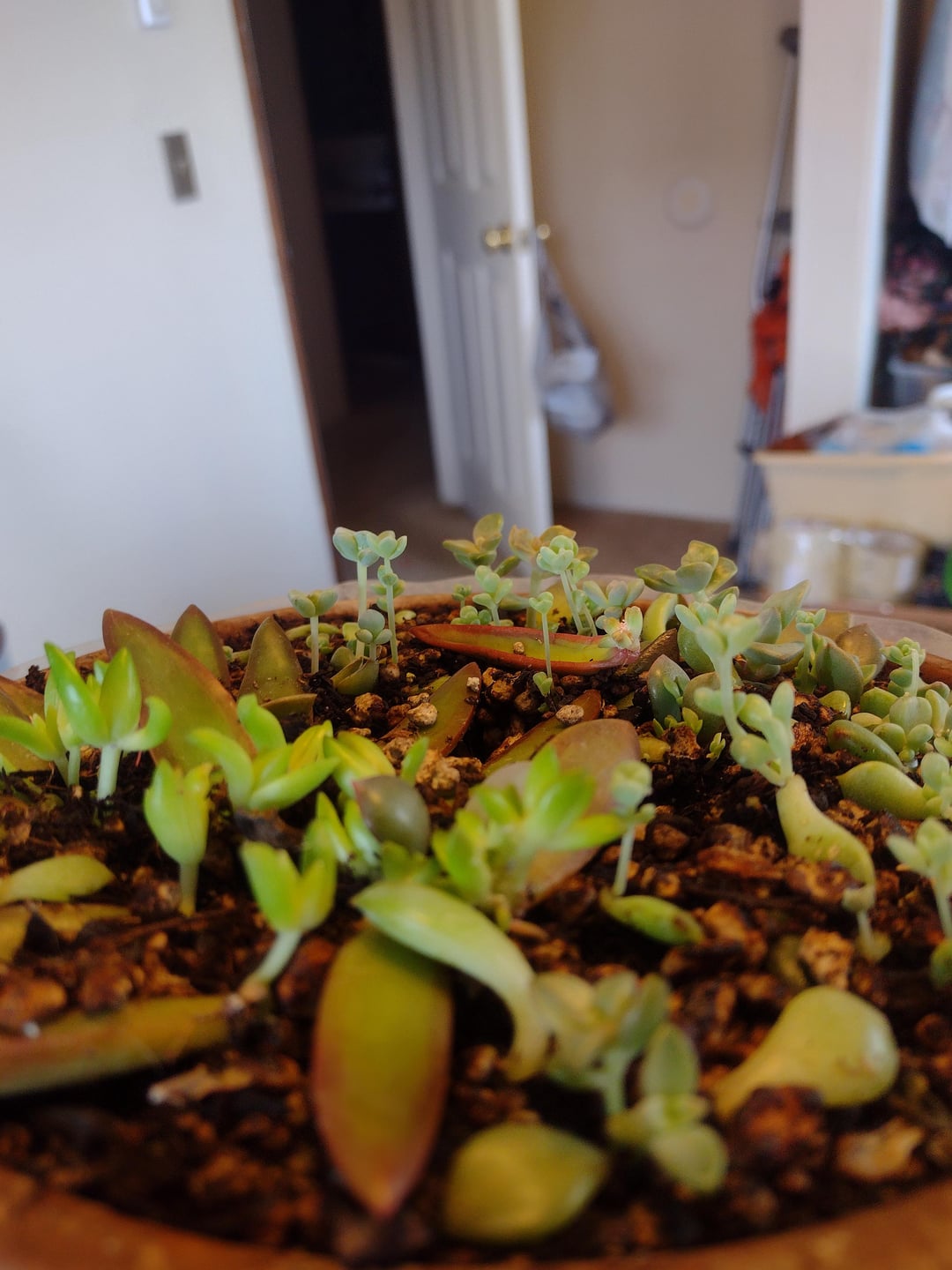 私は、多肉植物の葉を投げる運命のプランターをいくつか持っています。 私もまだまだ成長中ですが、みんな足がすごく伸びています! ただ光量が足りないだけでしょうか? 私は南向きの窓のすぐ下にそれらを置き、その棚に2つのLED植物ライトを置いています。 アドバイスをいただければ幸いです