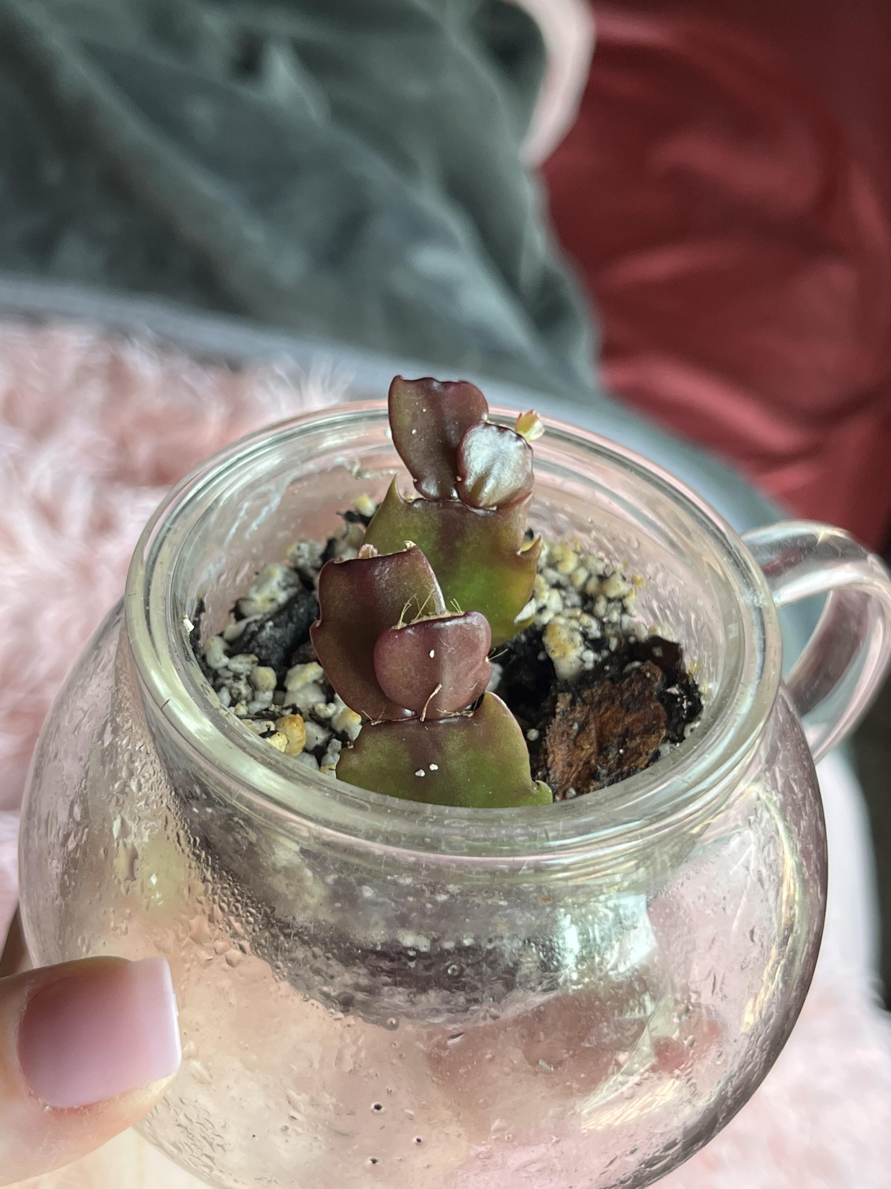 亡くなった祖父母が感謝の気持ちを込めて作ったサボテンのピースをどうやって飾るのがベストかアドバイスを求めて 1 か月前に投稿しました。 水、土、パーライトで試してみました。 水とパーライトの破片は腐ってゲル状になりましたが、ほとんどその中に残っていなかったため、なぜまだなのかわかりません。 もう一方の土の支柱には数週間前から根が生えていて、今朝新しいベビーリーフが出ていることに気づきました!! とても興奮しています。彼らの植物をもっと持っていればよかったのですが、少なくとも私は今これを持っています。 いつも咲いていたのを覚えています、誰もがいつもとても奇妙だと思っていましたが、私は彼らの家が特別な雰囲気を持っていたと本当に信じています。 スレッドで助けてくれた人に感謝します!!