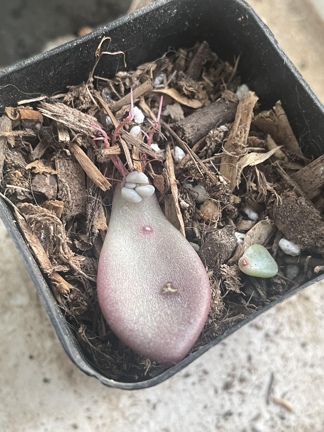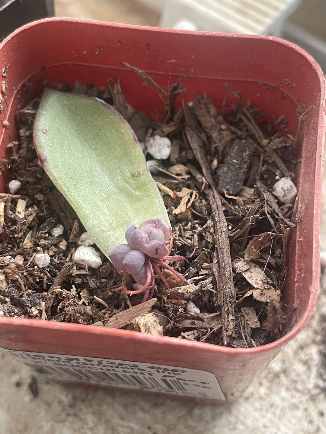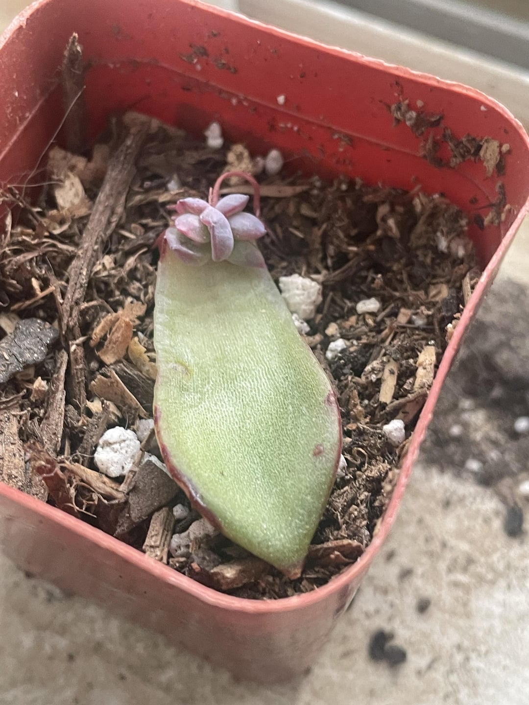 最初にクリスマスの日にこれらの葉を取り除きましたが、約3週間後に根が出始めました。 示されている最初の葉が最初に成長し、根よりも先に葉が成長し、最も大きく成長しました。 2週間経っても大きくなりません。 2つ目は次に始めて、先月葉が成長し始めたばかりです。 あちらの根は上向きに成長しています。 3 番目の根は最後に始まり、成長が最も遅いです。こちらの根は前方に伸びているのではなく、まっすぐ下に伸びています。