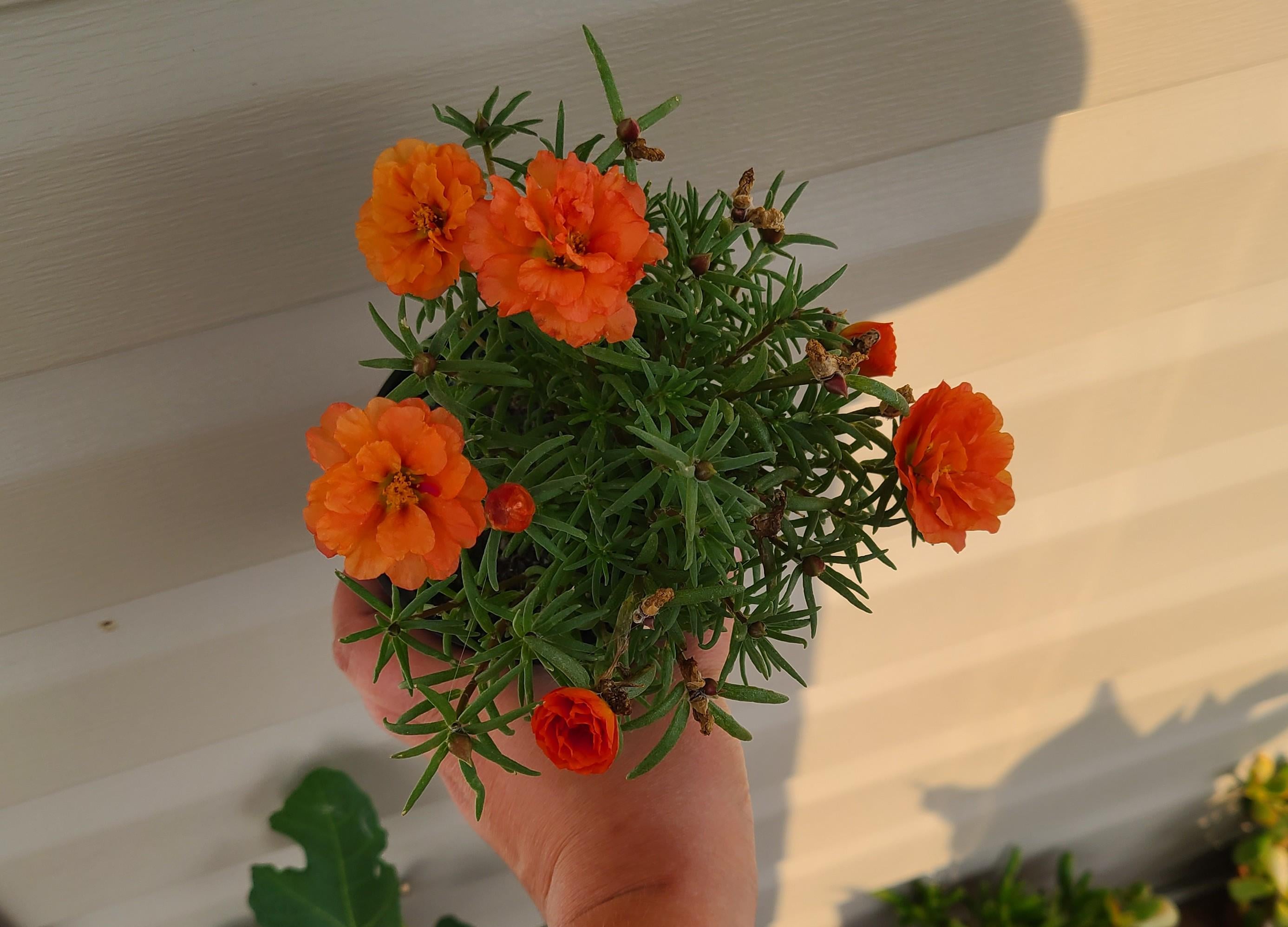 この春、近所の Canadian Tire 園芸センターでパセリの鉢を買いました。その中に 1 インチほどのポーチュラカの茎が入っていました。土の入った鉢に挿したところ、今このようになりました。いくつか挿し木にして、冬越しさせようと思います。:)
