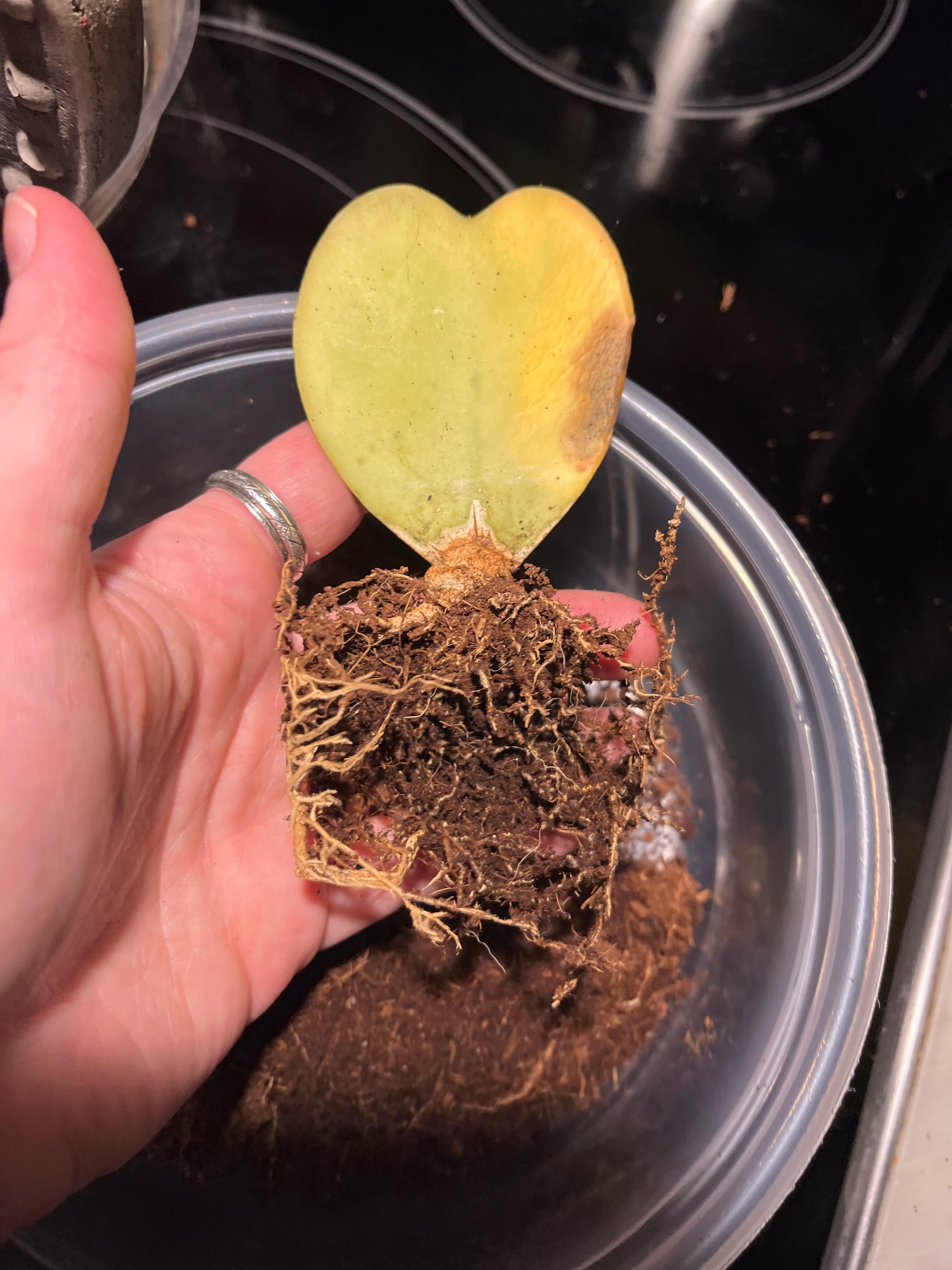 文脈として、私は亡くなった祖母がバレンタインの贈り物としてくれたこのホヤの葉を約 3 年間 (おそらくそれ以上) 持っていますが、保存できないかもしれないと知ってショックを受けています。 ほとんどの多肉植物とは異なり、単一の葉として新たに成長することができないと読んだことがありますが、この植物にはかなり重要な根系があり、潜在的に節があるのでしょうか? 私はこれらの植物について推測できるほどの知識はありませんが、たとえそれが私の植物に別れを告げることを意味するとしても、少しでも勉強したいと思っています。 TIA