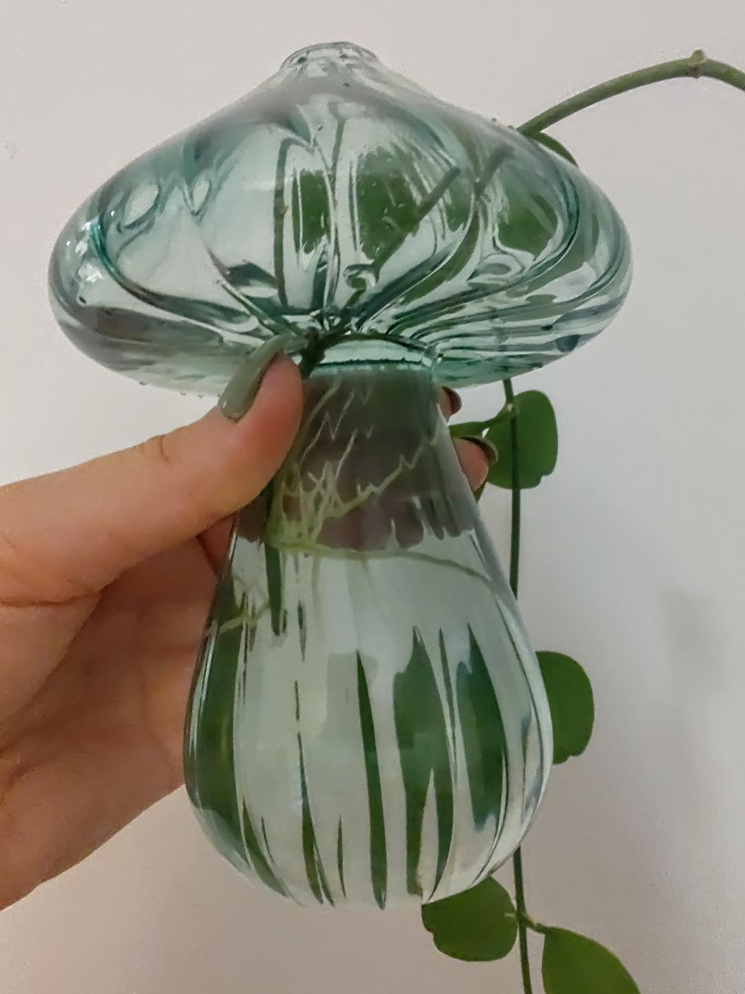 ちょっとした小道具のための、このおしゃれな小さなセットアップを見つけました🌱 素材: ガラス。形状: キノコ型 – 穴がいくつか。色: 明るい色、パステルカラーなど、さまざまな色。サイズ: 高さ約 14 cm、キャップの幅約 12 cm。ショップ: 地元の店、Temu と AliExpress でも見かけました。