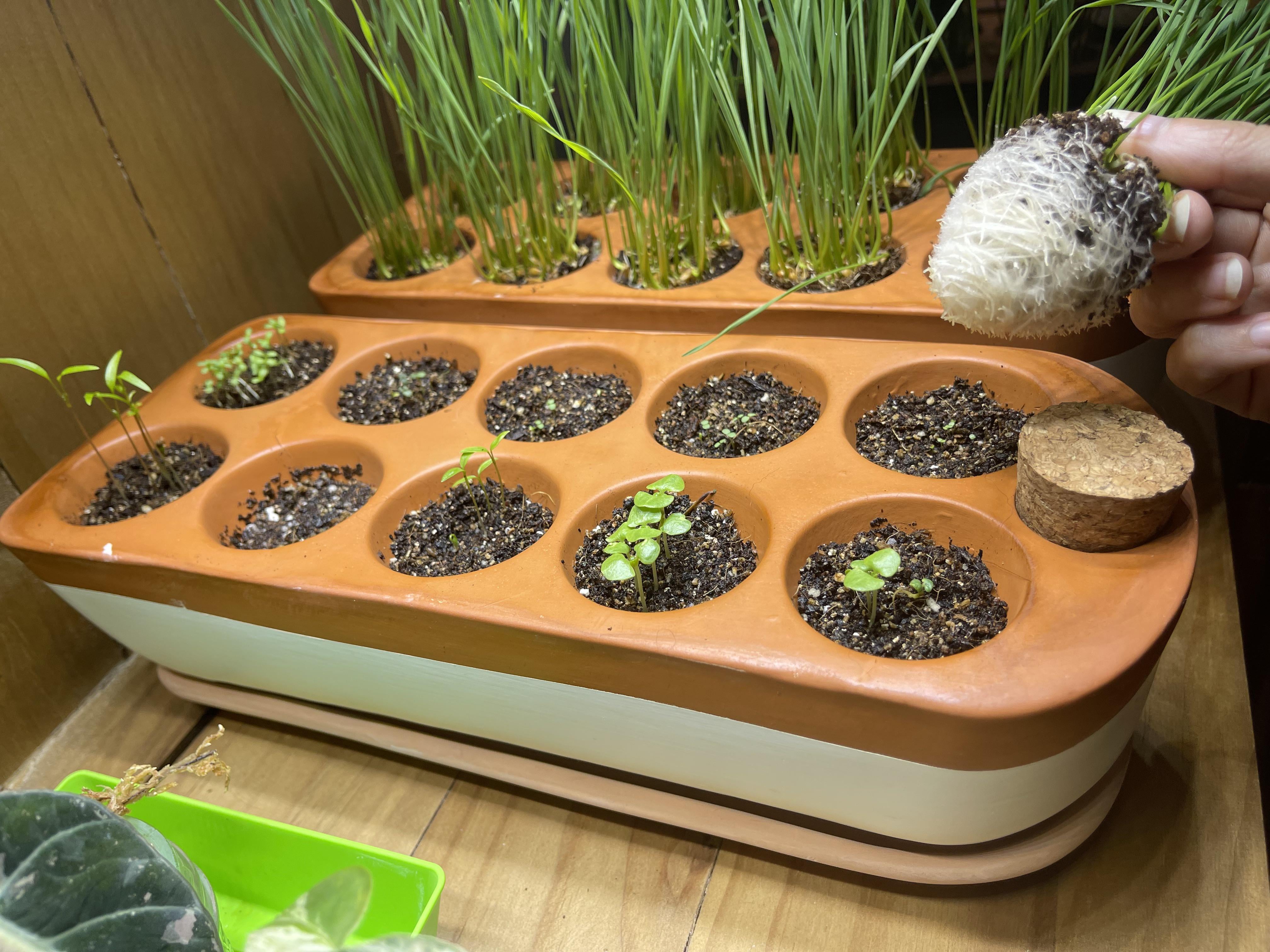 本当にうまくいくとは思っていませんでしたが、ローズマリー(スポンジでも育ったことがない)などの種をいくつか入れてみたら、ドーム型で覆われていない、しっとりとした完璧な状態が保たれました。根もとても素晴らしいです! 1 つあたりたったの 30 ドルでした。