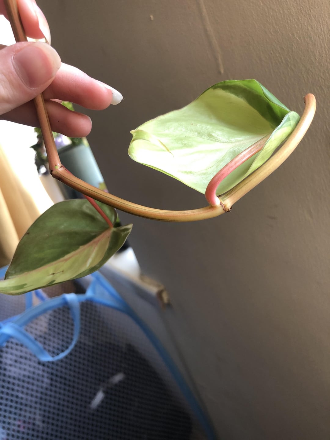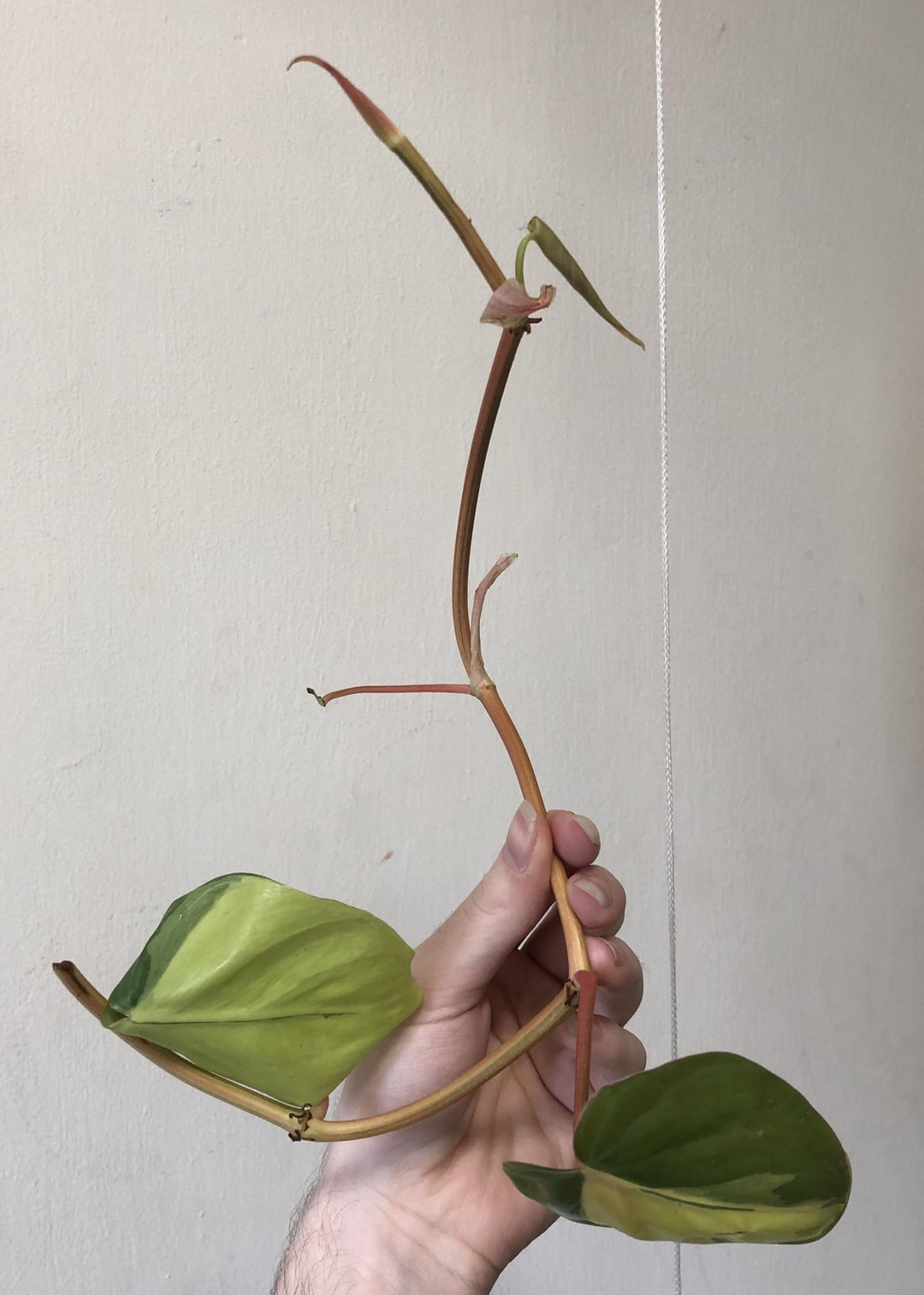 また、かなり長いので、2 つの別々の支柱に切断できるかどうかも気になっています。上部に非常に小さな丸まった葉があり、これが 2 枚の完全な葉の上の切り口が繁茂するのに十分かどうか疑問に思っています。どこを切断すればよいかアドバイスをいただければ幸いです (笑)