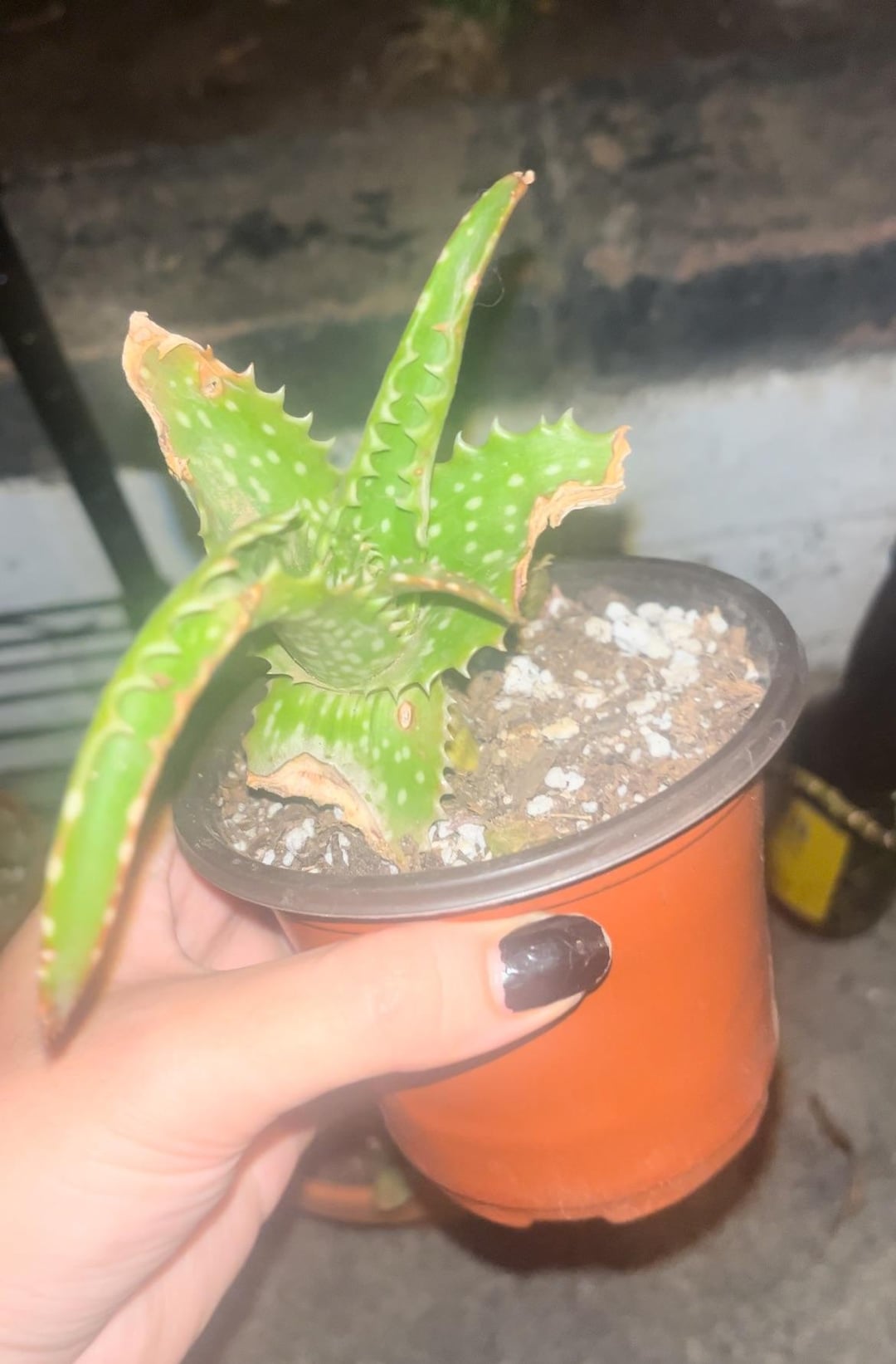スワイプして、この赤ちゃんを手に取ったときの最初の様子をご覧ください。成長にとても興奮しています! 誰か知ってたら教えてください、これはタイガートゥースアロエですか、それともソープアロエですか?私のアロエにはあまり詳しくないです(笑)、特にこの男はまだ回復中で不安定そうなので