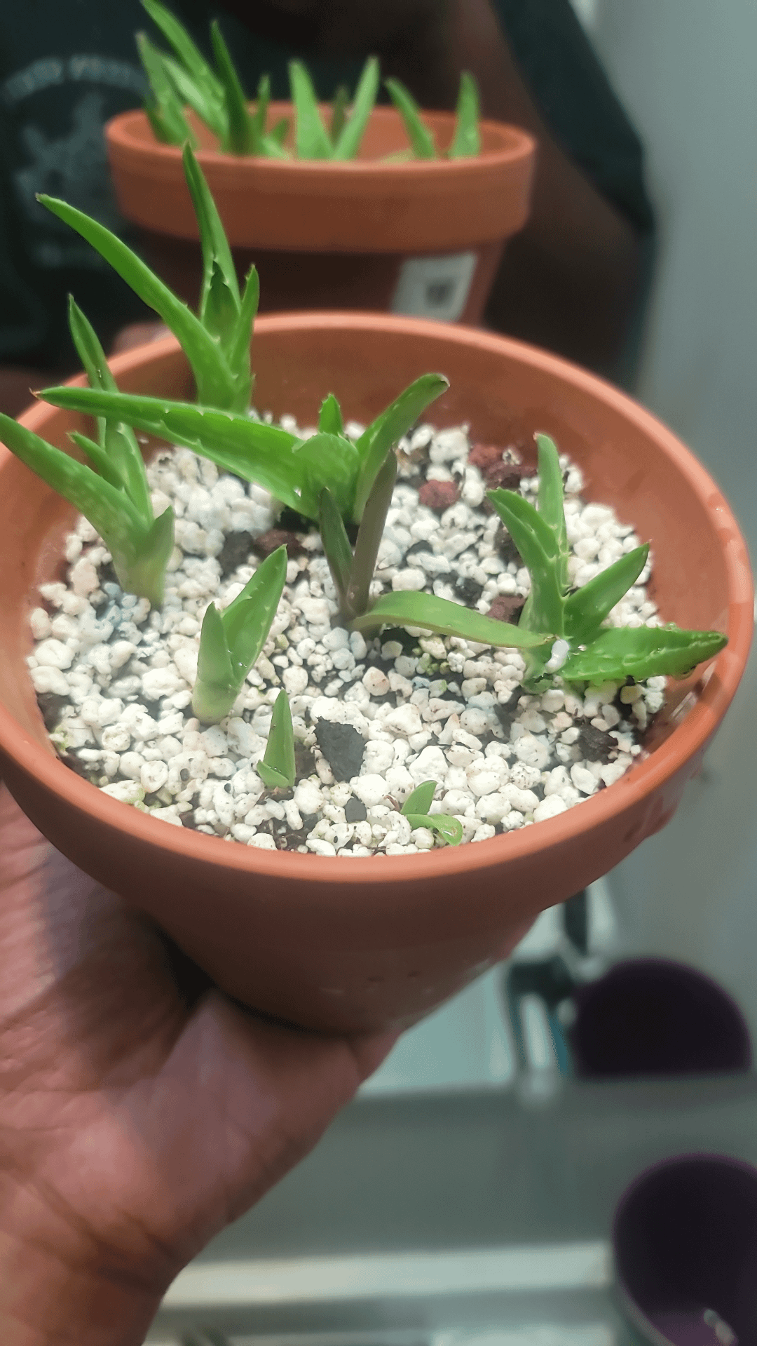 3 週間ごとに、メインの植物から 3 ~ 4 本の子株を摘み取ります。そして、それをあげます。先週、これらすべてを摘み取りました。そして、摘み取る準備ができている子株があと 4 本あります。
