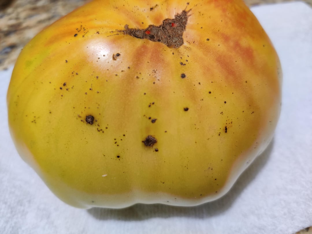 初めてのガーデニングです。トマトを育てたのですが、黒褐色の斑点がいくつかあります。食べても安全でしょうか? ご協力ありがとうございます。 私は害虫を観察するのが好きで、ハローのある黒い斑点を見つけましたが、これらにはハローがなく、真っ黒でもありません。
