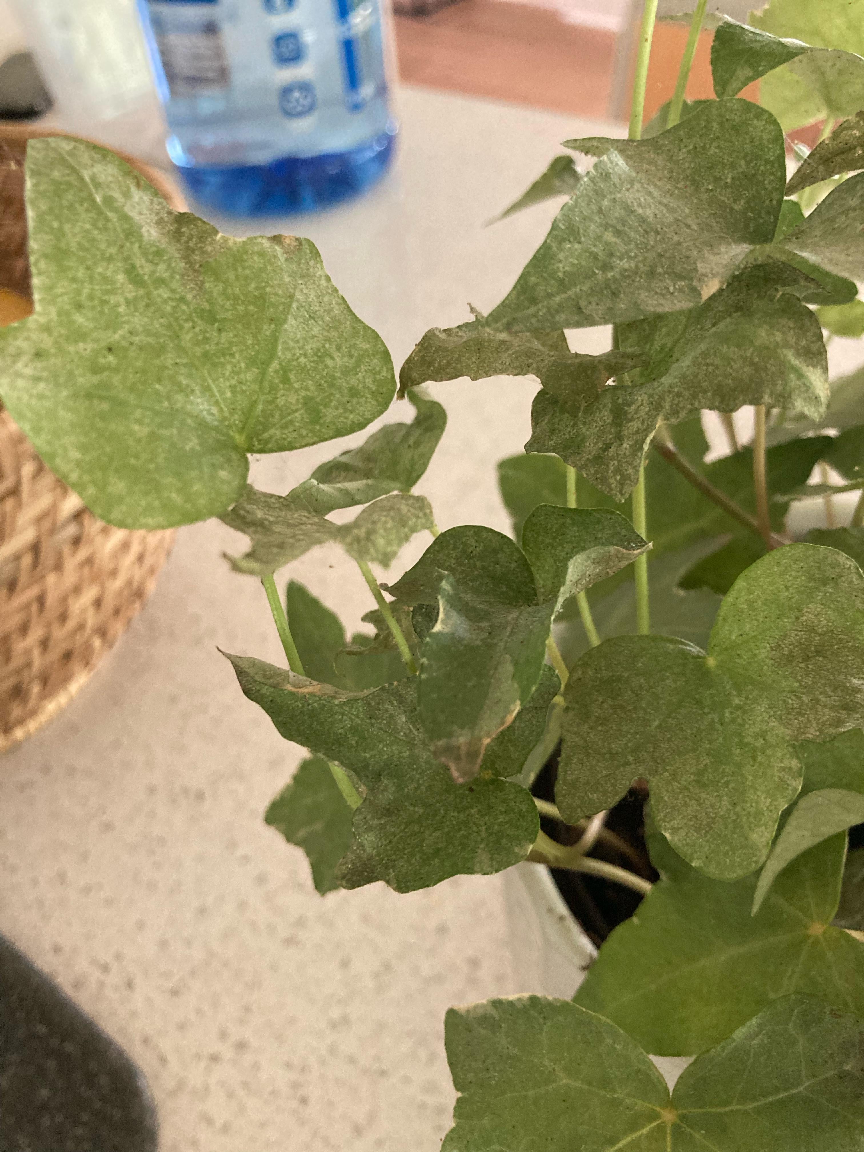 小さな室内用アイビー植物を育てています。直射日光は当たらず、間接光だけが当たります。葉の緑色が失われ、色あせて青白くなっています。落ち始めている葉もあります。原因は何かわかりますか?