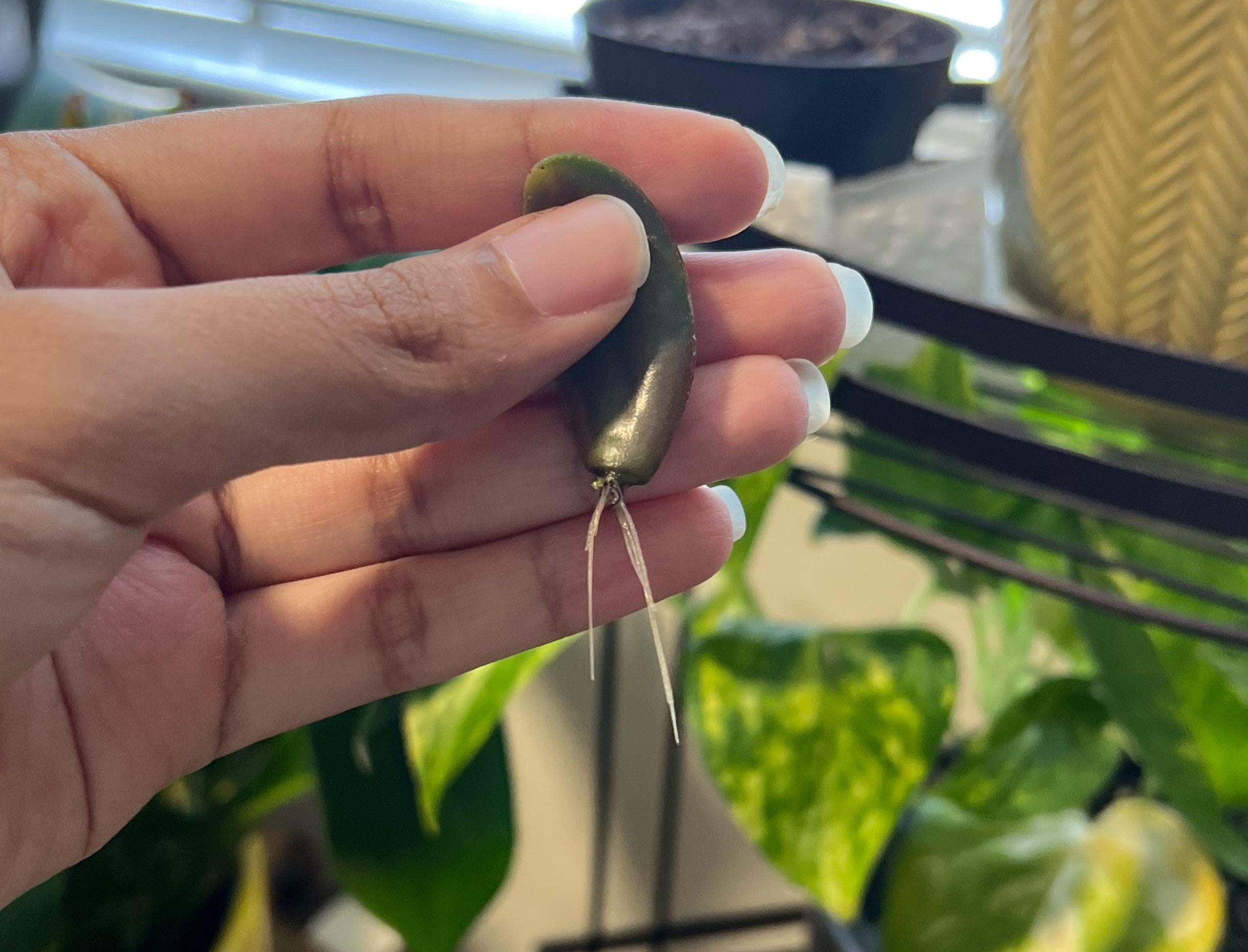 こんにちは!これは私が実際に根を張った初めての成功した葉挿しです。私はまだ植物初心者ですが、これをほぼ 3 週間水に浸しており、これらの根が移植に耐えるほど長いかどうか知りたかったのです!根は 4 本ほどありますが、固まっています。これを移植するには小さな素焼きの鉢が良いでしょうか?
