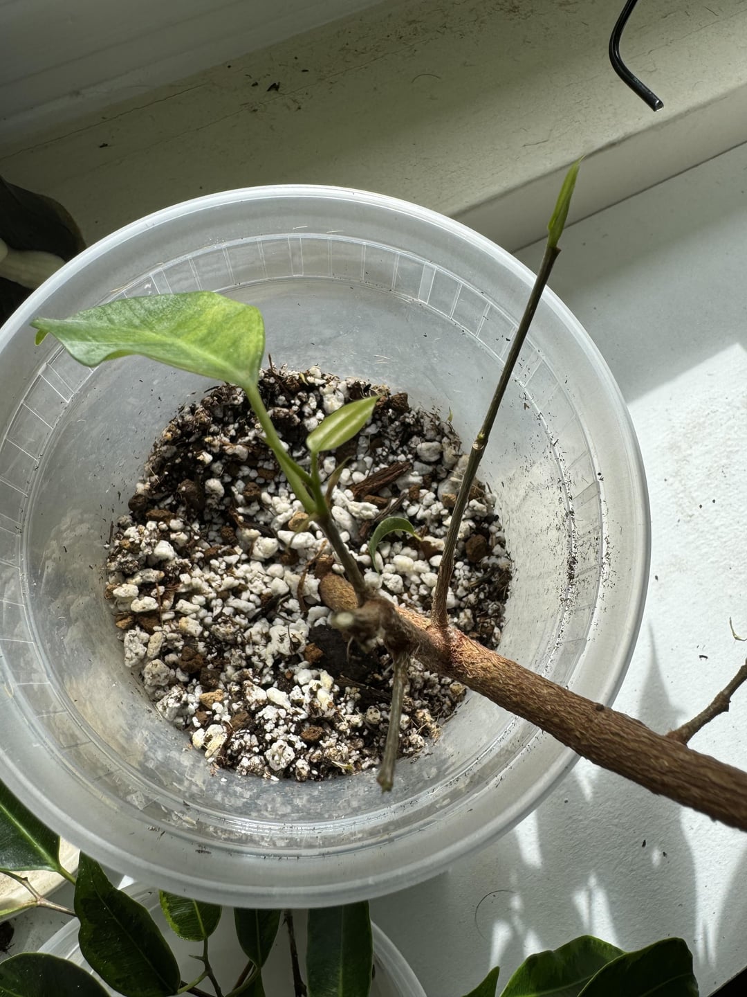 私のフィカス ベンジャミナの挿し木から新しい成長が始まりました。これは根付いたということでしょうか?
