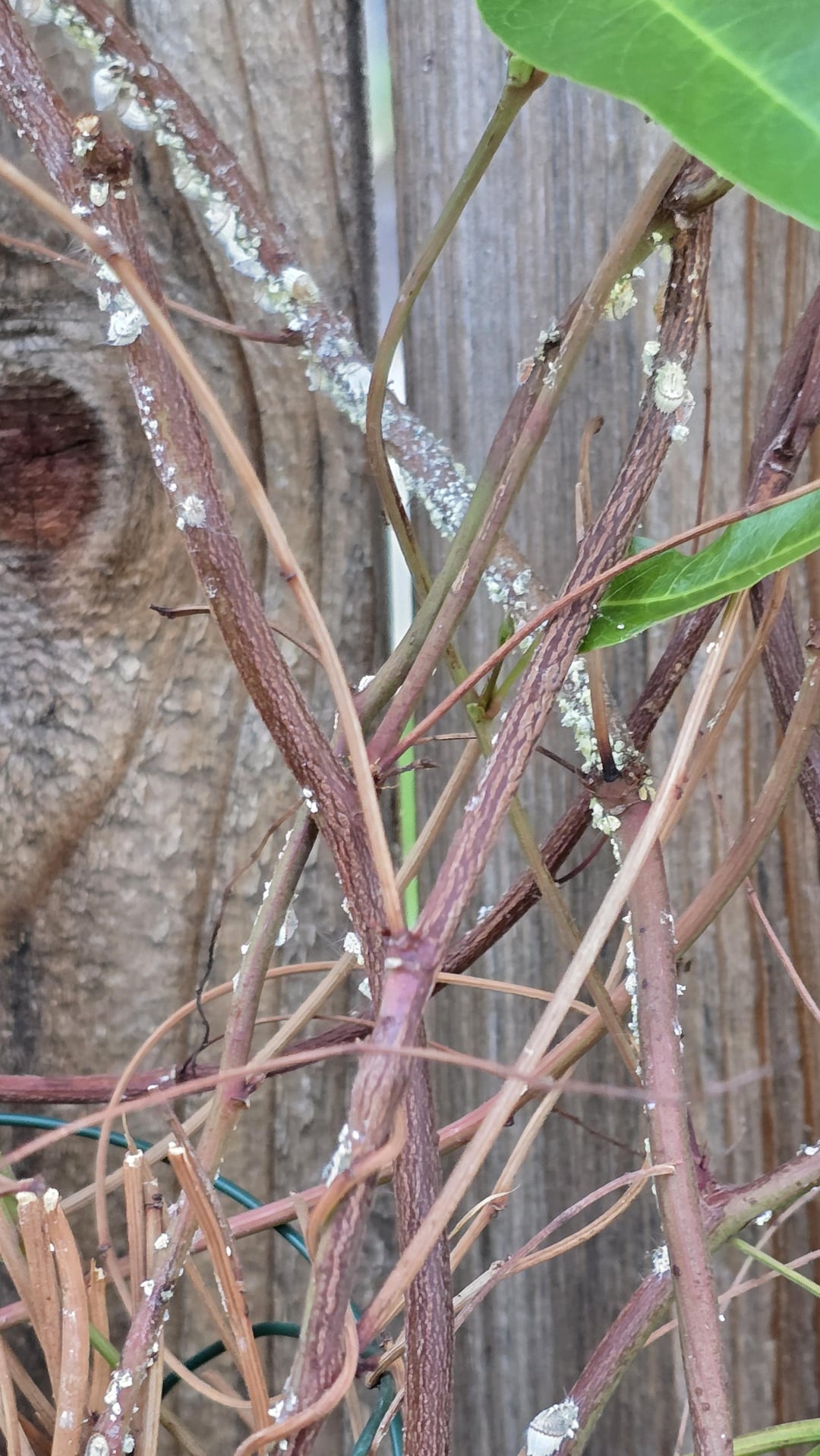 植物の名前は忘れましたが、冬(カリフォルニア南部)に青い花を咲かせます。最近白い斑点が現れているので、取り除く必要があるかどうか、またその方法を知りたいと思っています。また、他の植物にも転移するのでしょうか?