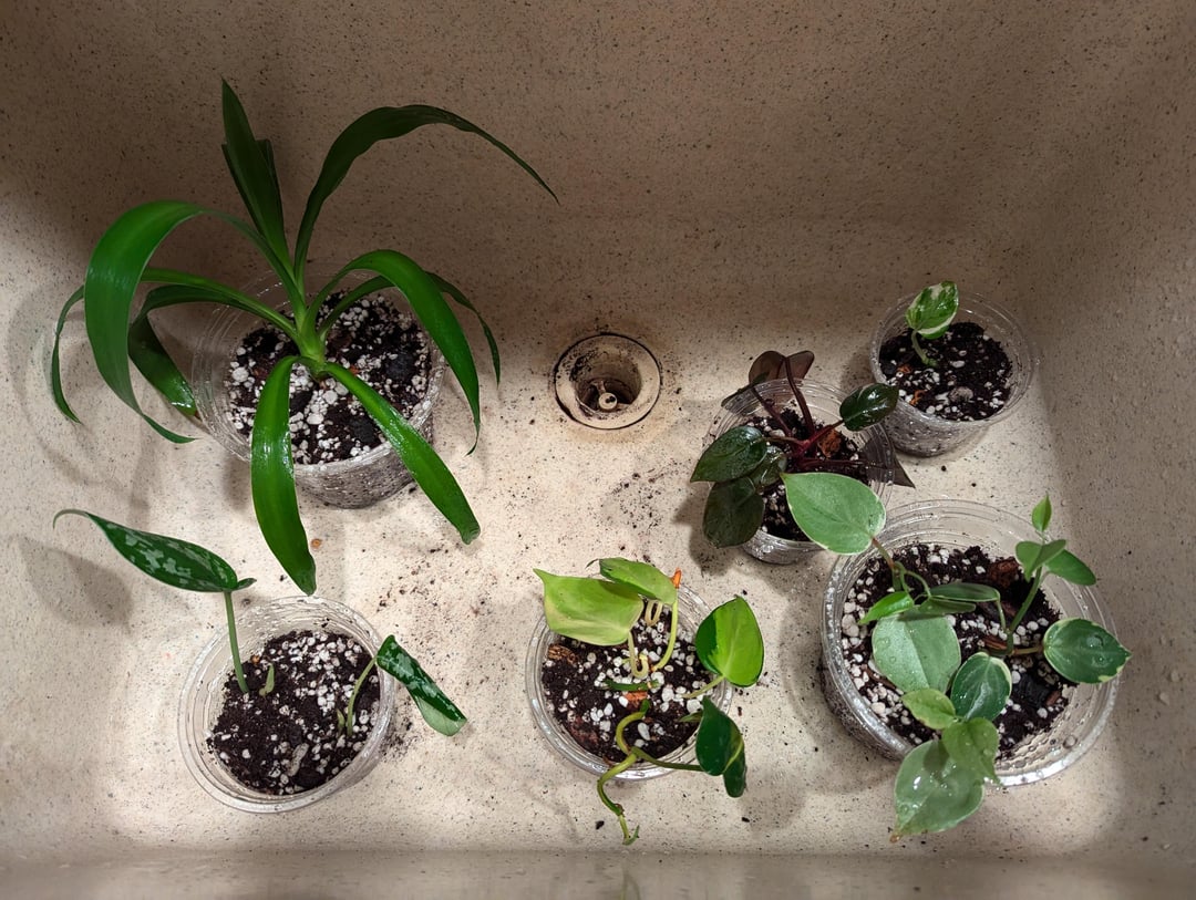 この夏に根を下ろした、ランダムな小道具(友人、交換品、さらにはラガーディア空港の枯れかけた植物から愛情を込めて拾ったもの)をたくさん鉢植えにしました🌞