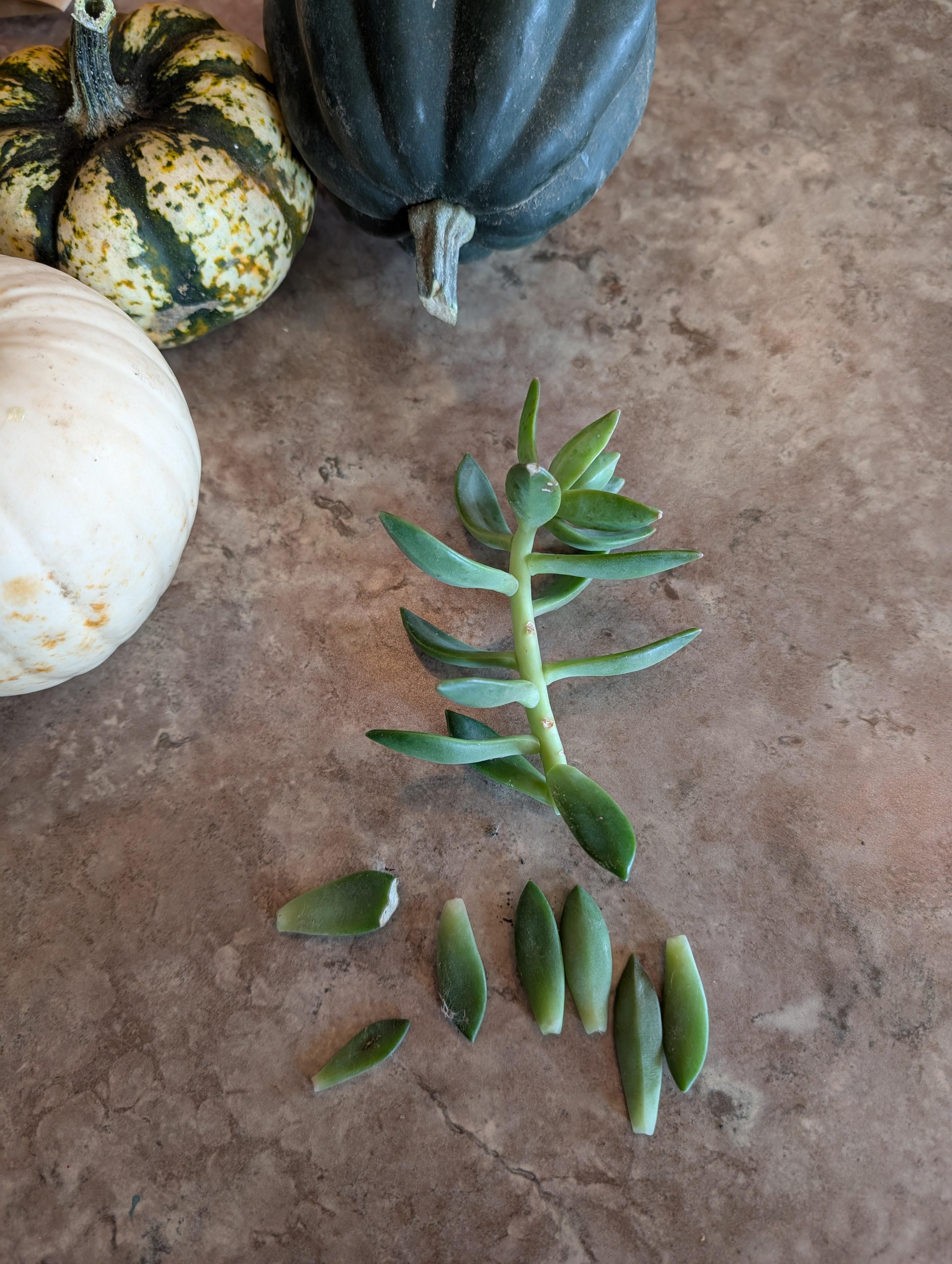 支払いをしているときに、多肉植物の大きな鉢が 2 つあるのに気づきました。そのうちの 1 つは大量の葉を落としていました。オーナーに、地面からいくつか拾ってもいいですかと尋ねると、「いいよ」と答えてくれました。それから彼はもう一本の枝を折って私に渡しました。彼は言いました "妻が見たら、うっかり壊れてしまいました。" 笑❤️