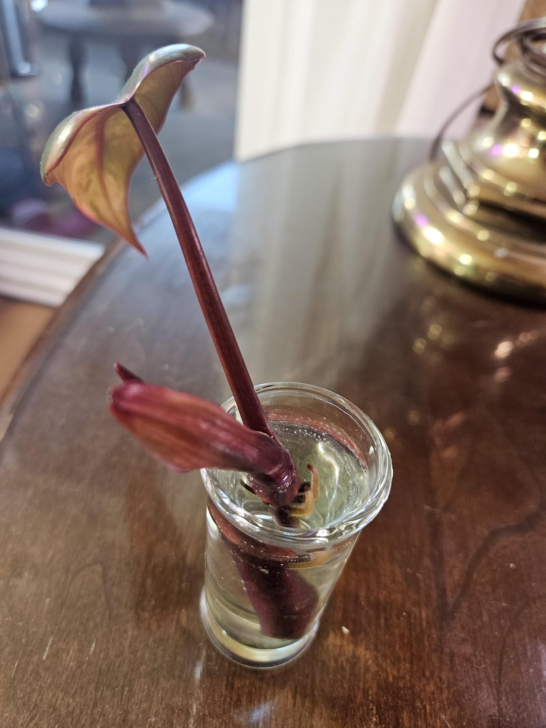こちらはフィロデンドロンの挿し木ストロベリーシェイクです。ガラスが小さすぎるのでしょうか?