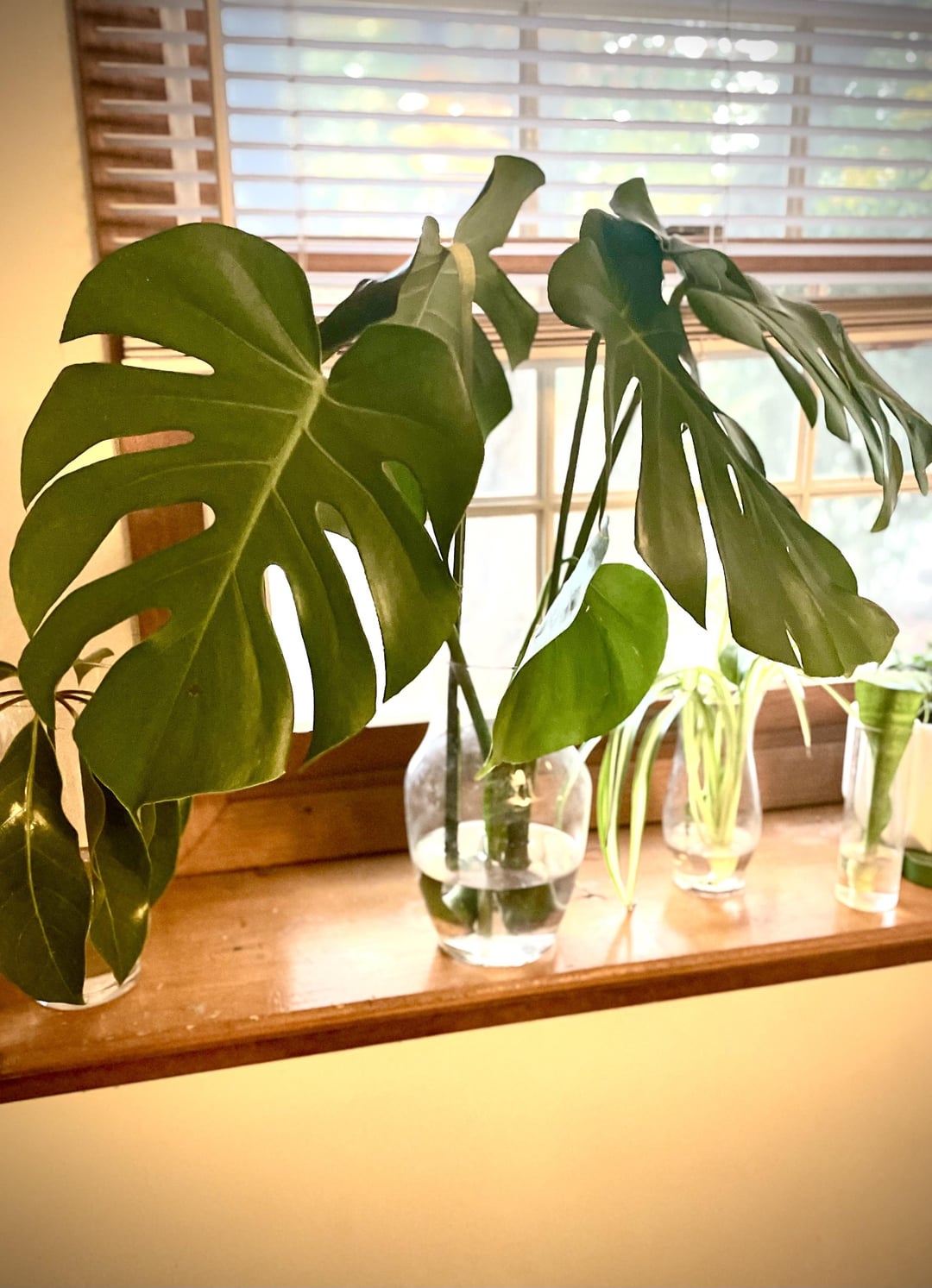 どこに行っても、私は何らかの葉っぱや切り抜きを持ち帰っています。私は水で繁殖するのが大好きです。すべての植物を変換するのが近づいています