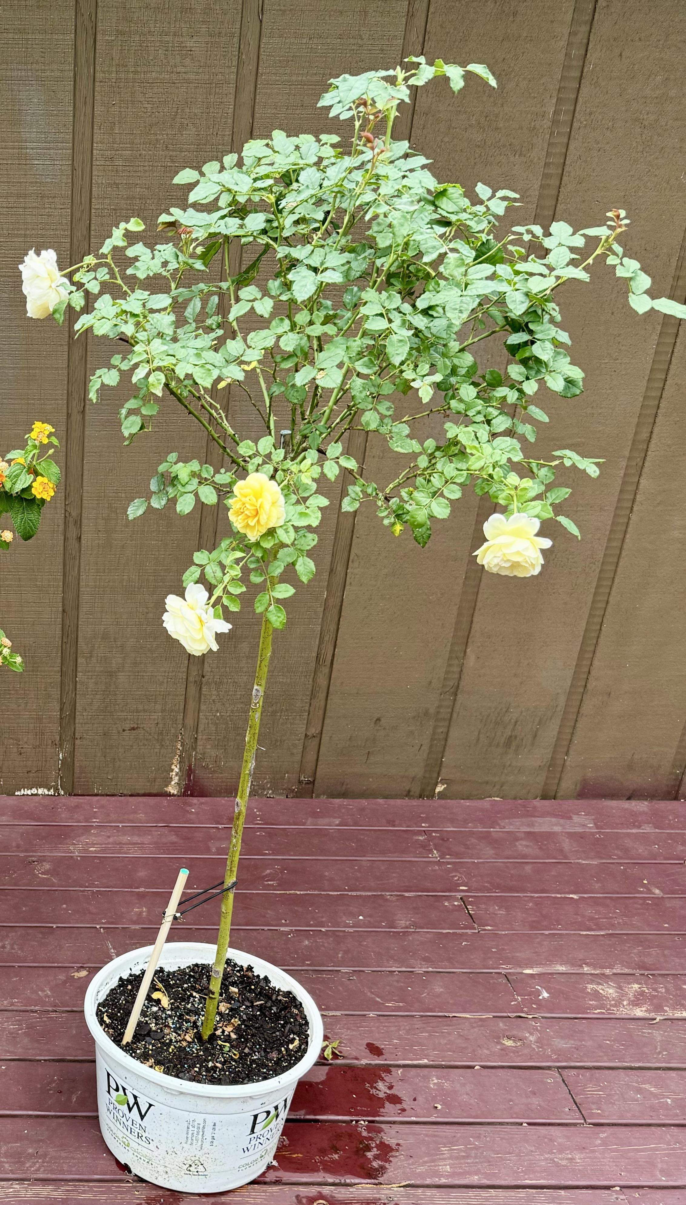 私たちはバラも藪も大好きですが、このように棒についた藪であるのはばかげているように見えます。茂みの根元にある棒を切って植えることはできますか、それともこれで枯れてしまいますか?