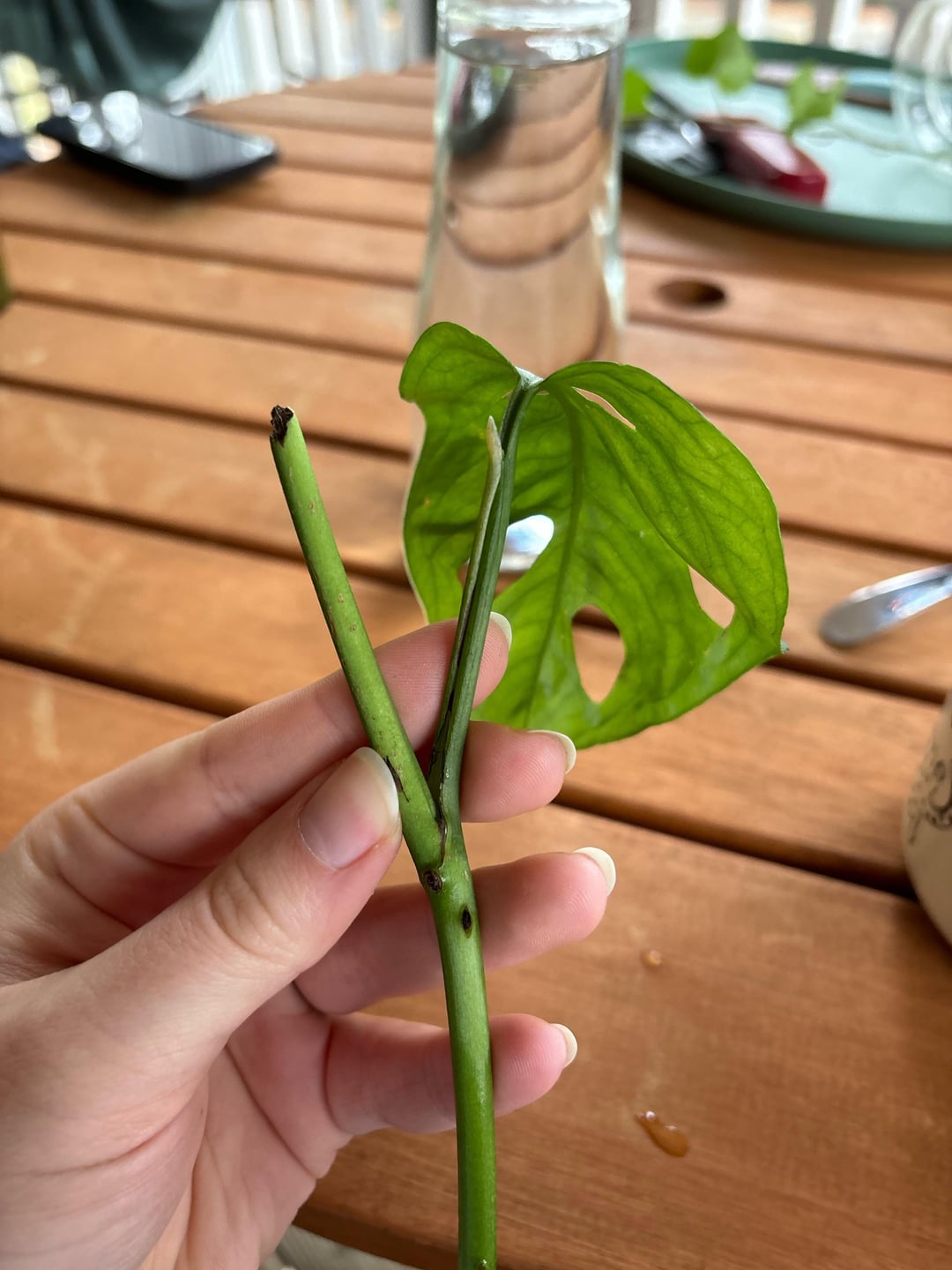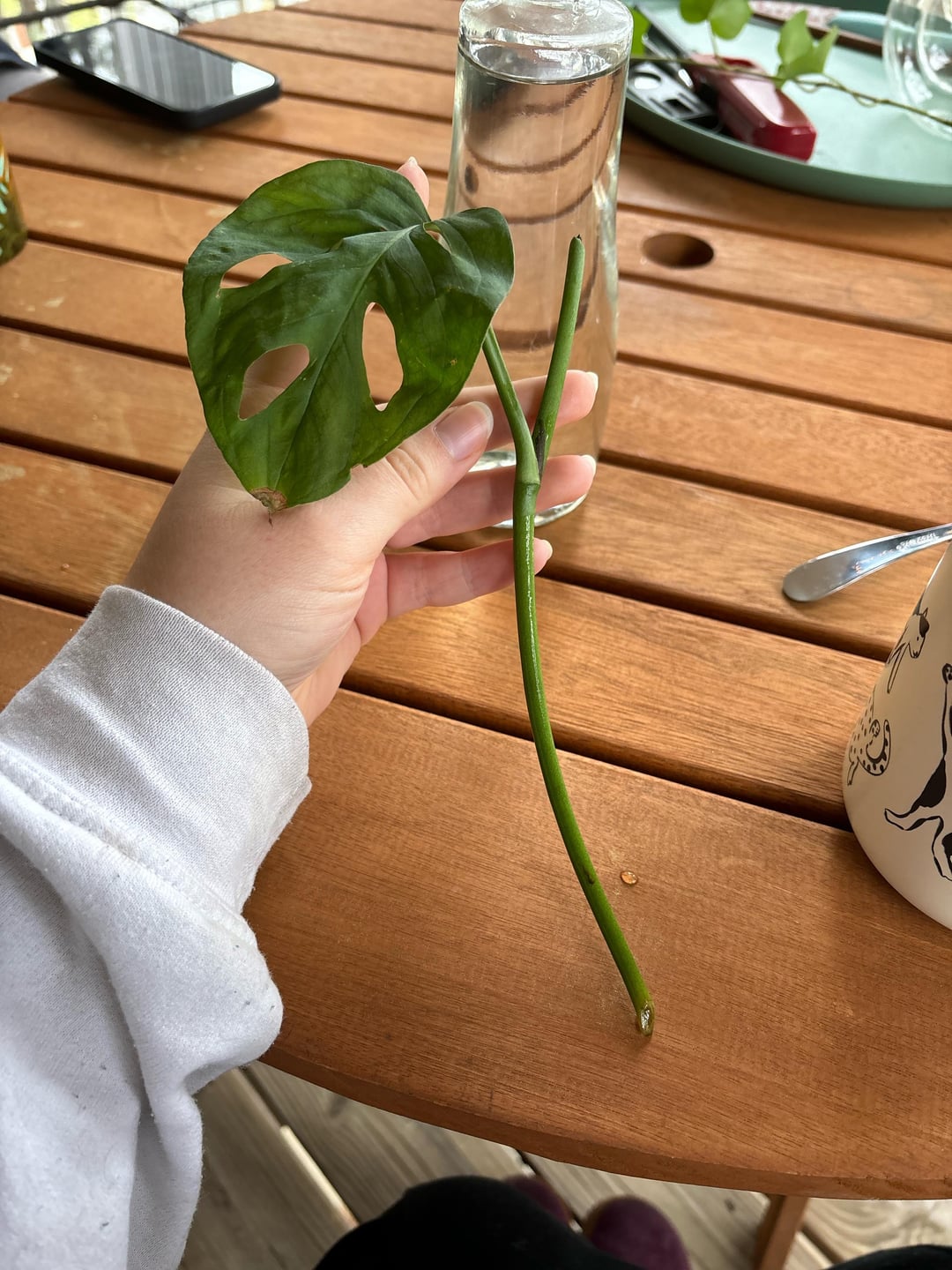 ほぼ1年前、私はこれを大手チェーン店のフロアから持ち出しました。 蔓が何本か台車に轢かれていたので、これは有望そうなものを持ち帰って水に入れて繁殖させました。 私はポトスの挿し木を水に挿して多くの成功を収めてきましたが、この植物には新しいアプローチが必要かもしれません。 今のところ成長はしていませんが、しおれたりストレスの兆候も見られず、家に持ち帰った日と全く同じ状態です。 これらが広まるには何か月もかかると聞いたことがあります。 このようなスイスチーズのフィロデンドロンを繁殖させた経験のある人はいますか?