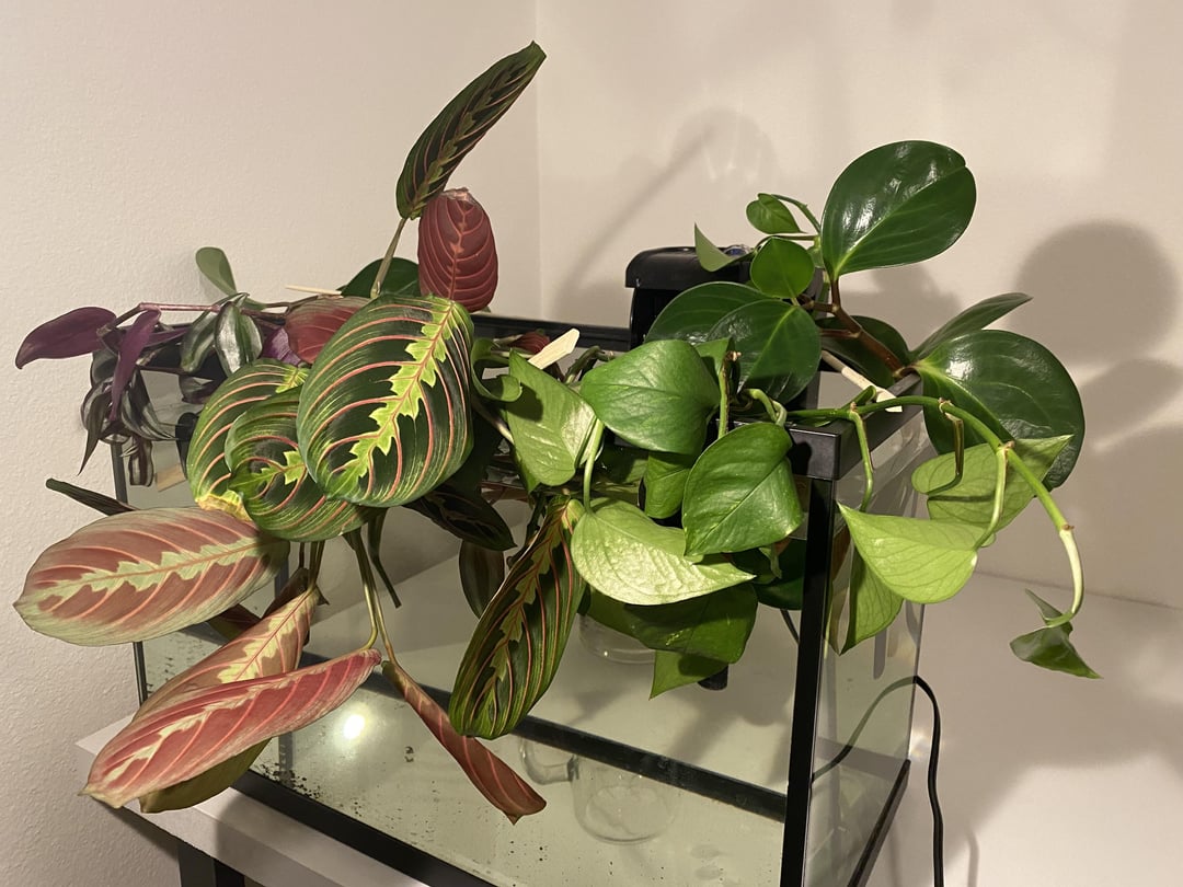 淡水水族館と観葉植物がとても良い仲間であることは誰でも耳にします。それはもう少し植物に傾いています(私生児は私の最後のバッチの根です、ああ、嬉しい相乗効果です!)。ブリーダー/病院の 10 ガロンを植物支柱タンクに変えることにしました。