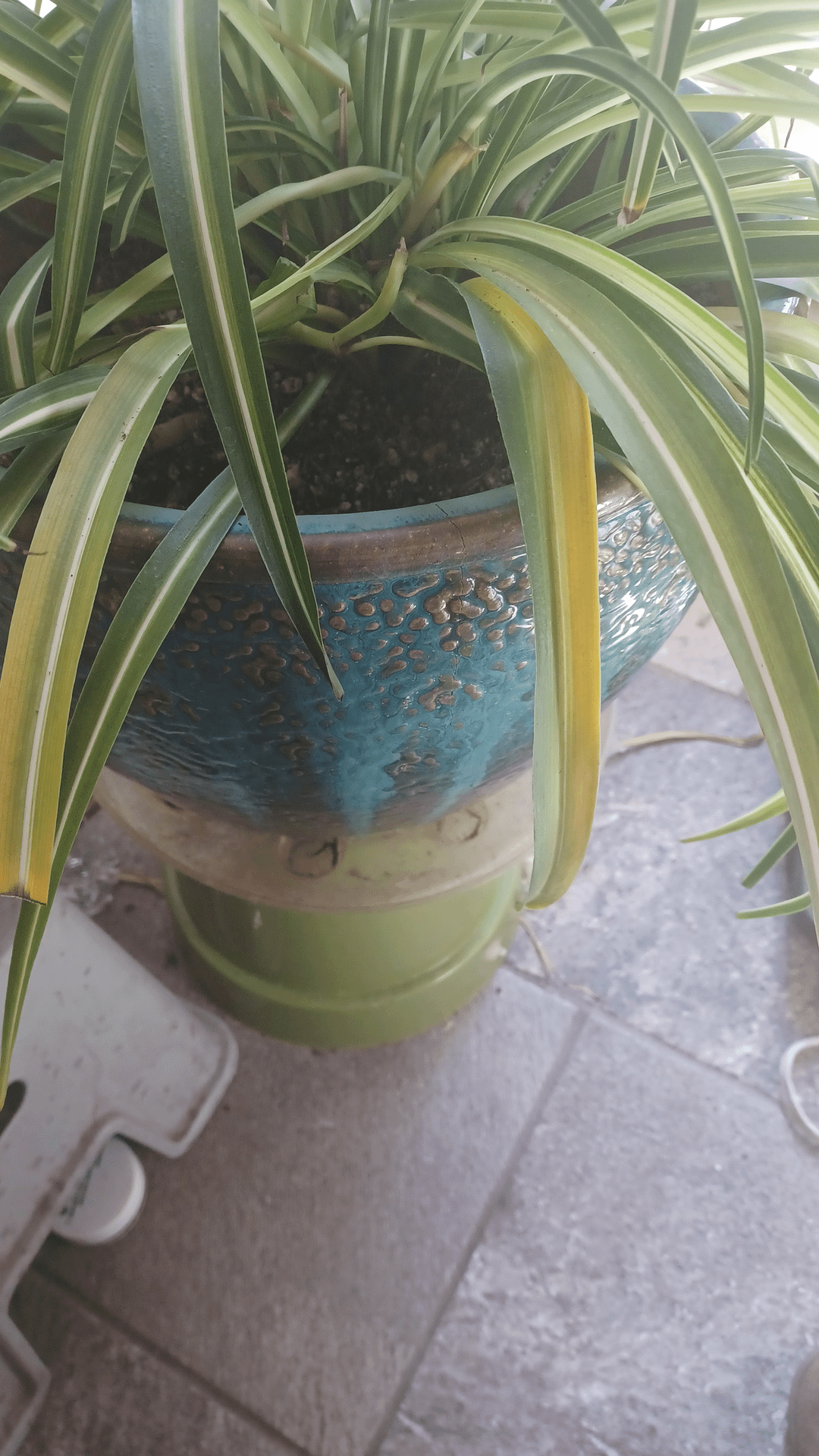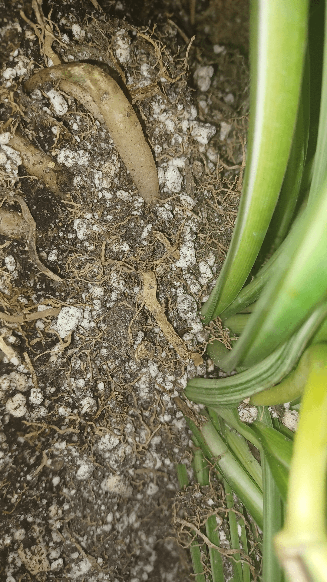 植え替えたばかりで、根元がおかしくなり、黄色くなった葉を切り取り続け、数週間前にバナナの皮の混合物を加えましたが、どんどん垂れ下がっているようです。しかし、植物の中心から新しい成長が見られるように思います。ヘルプ?