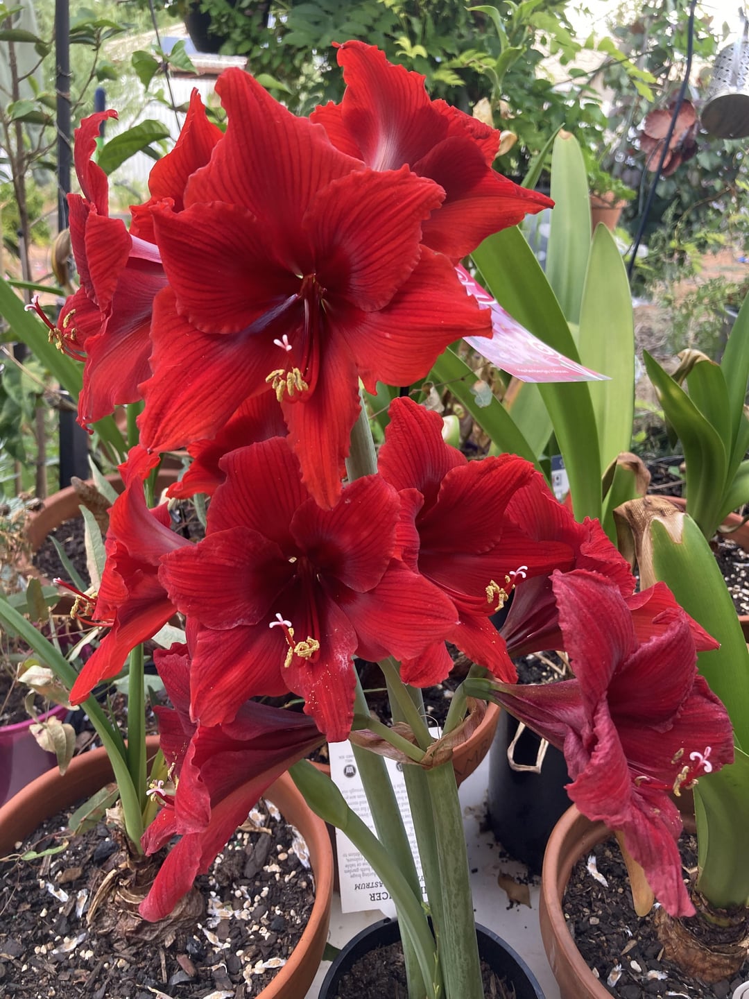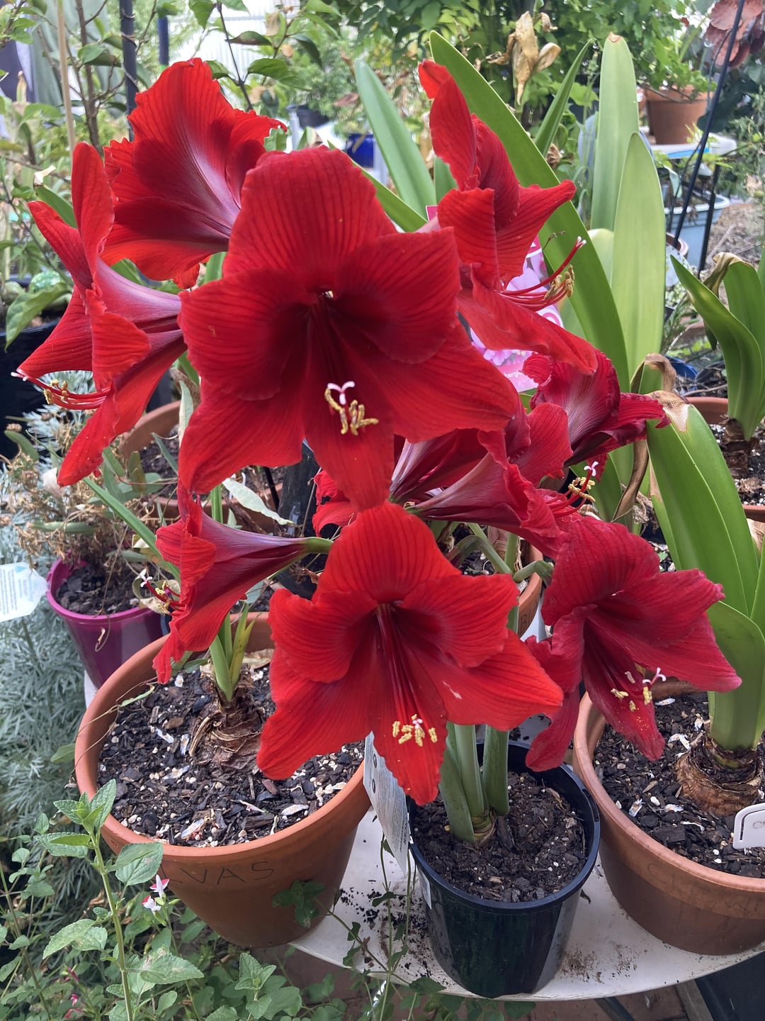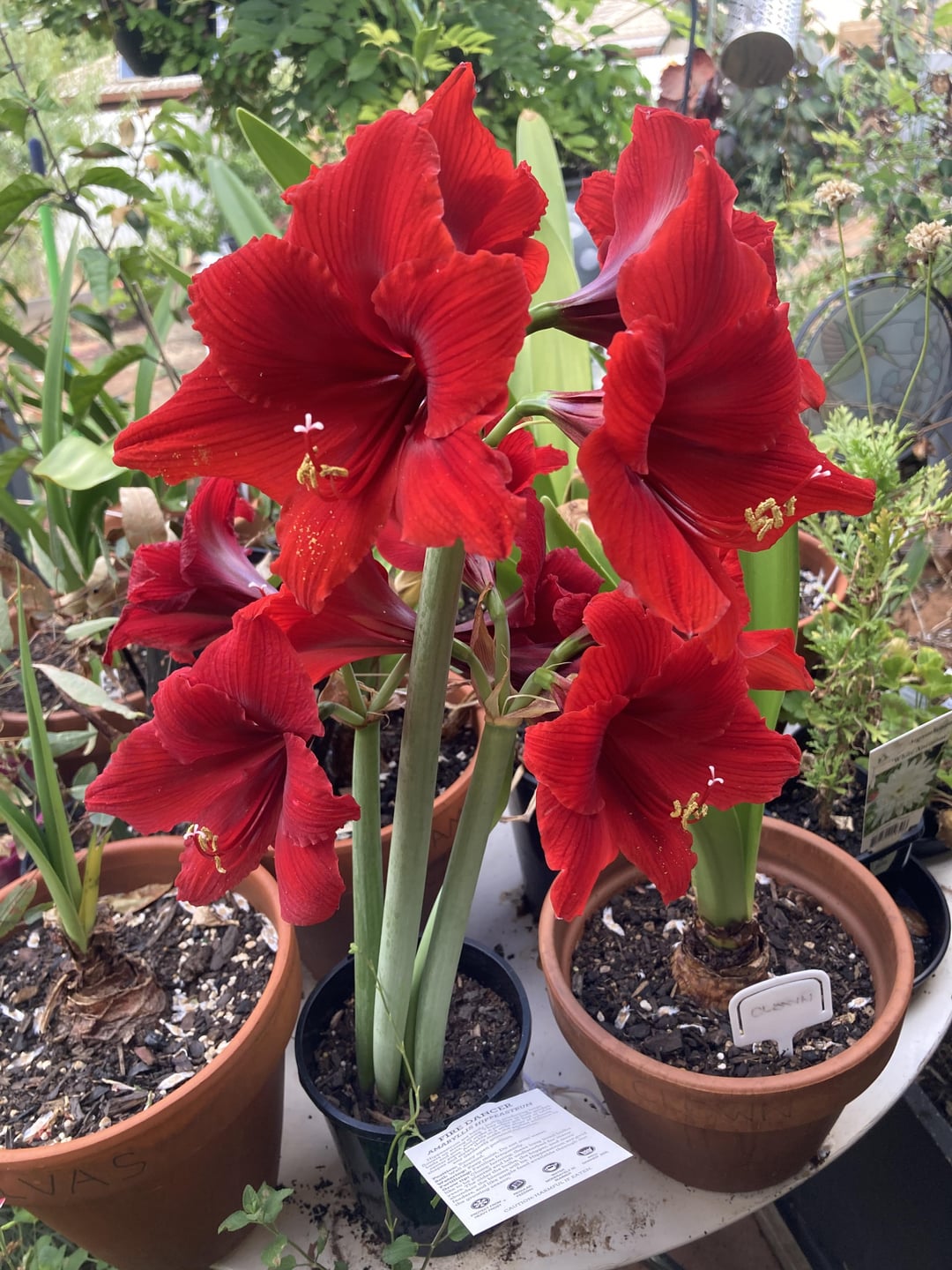 ファイヤーダンサー・ヒッペアストラム!球根が一度にこれほど多くの穂と花を放つのを見たことがありません。 4番目のスパイクは急速に成長しています!