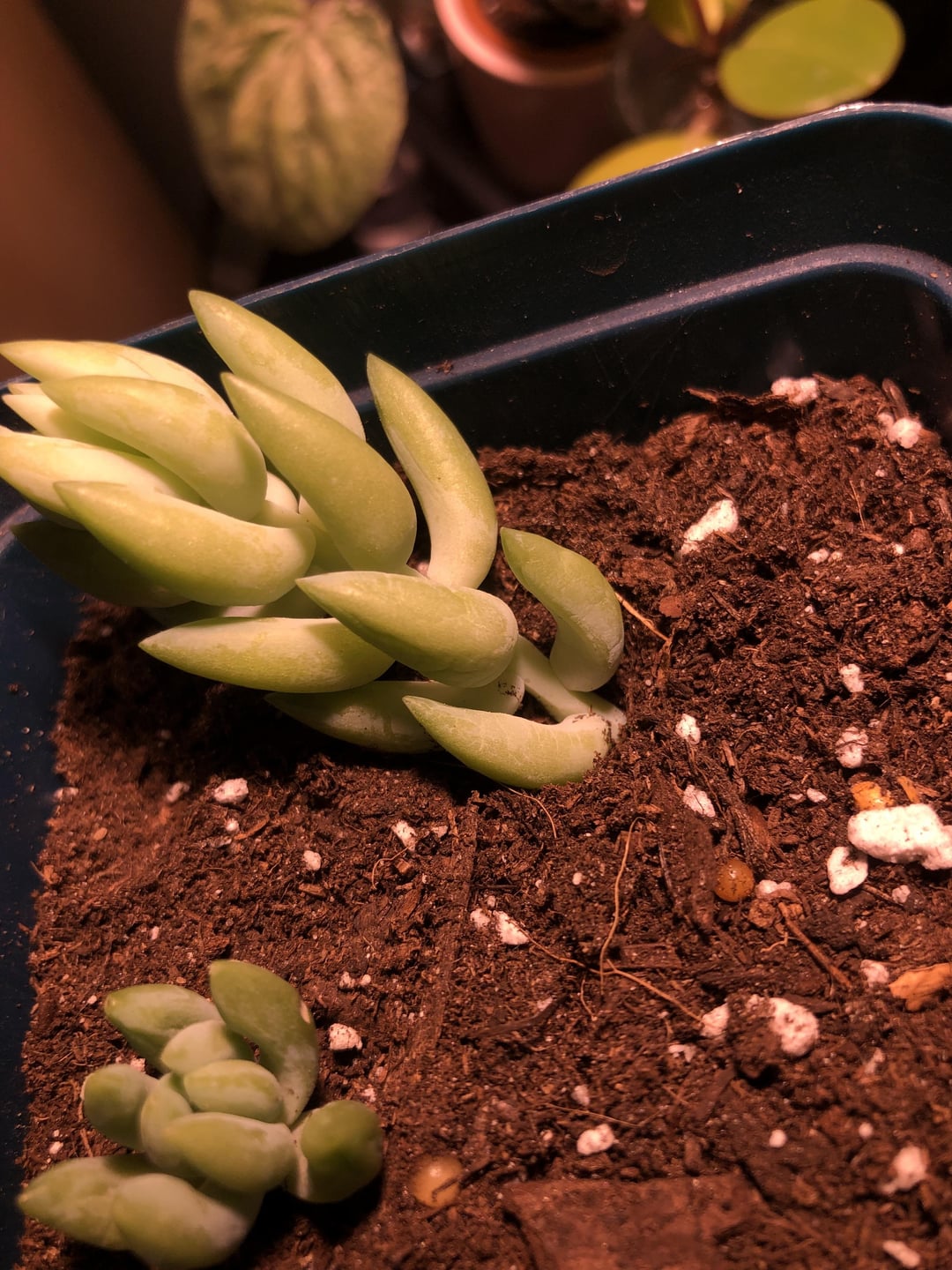 彼らは、フルスペクトルの育成ライトの下で、排水穴のある鉢の中で、私の鉢植えミックス(サボテンと多肉植物の1:1:1のミックス、屋内鉢植えミックス、蘭の樹皮!私は余分な排水のためにパーライトを注文しました)で冷やしています。 。