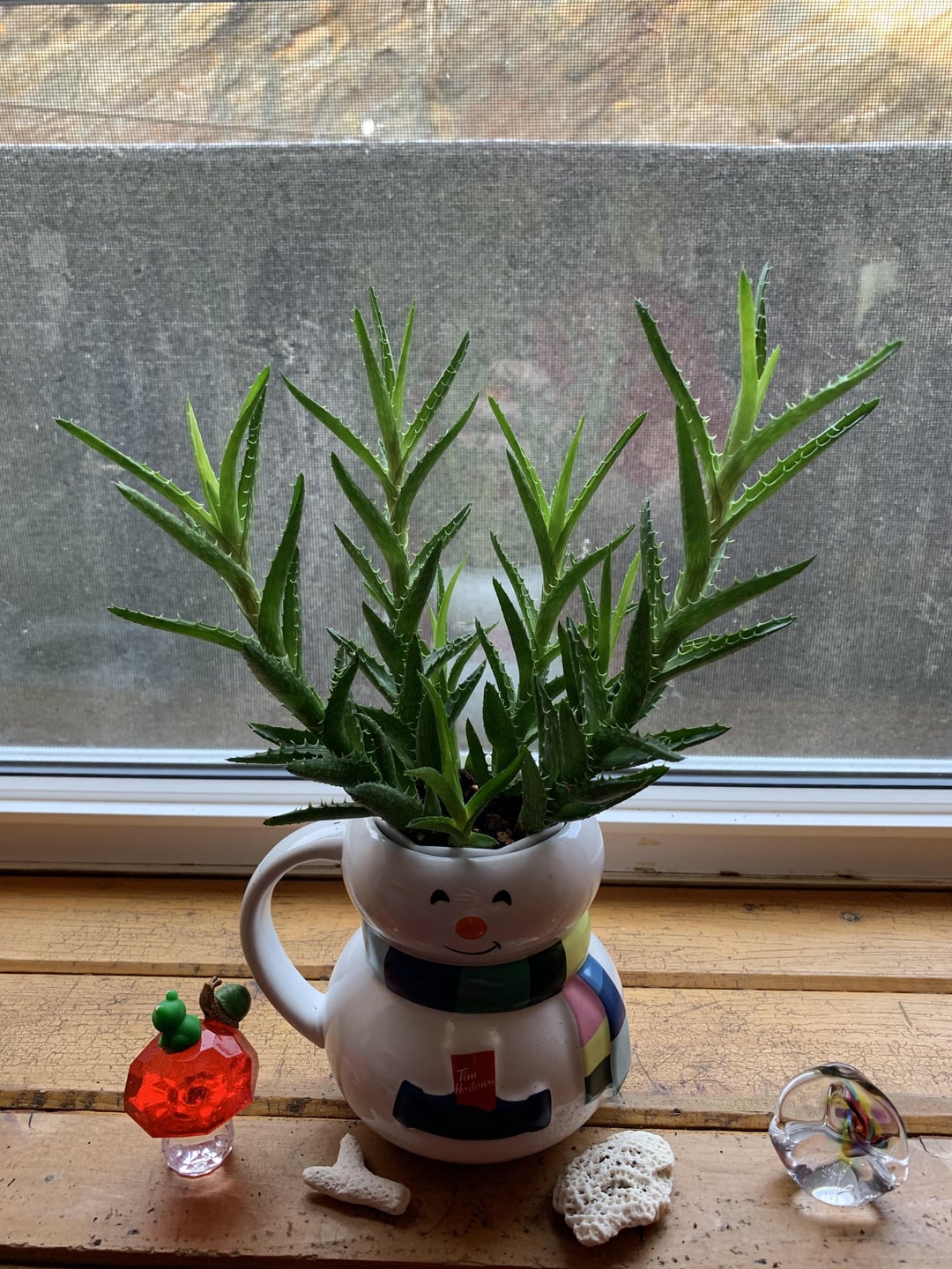 私はこのタイガーストゥースアロエが大好きです。コナカイガラムシ、キノコブヨ、アザミウマが発生した植物の隣に置かれていました。アザミウマのせいで、この植物以外のキッチンの植物がすべて枯れてしまいました。それは生き残り、繁栄しました。 1枚目の写真は4月のものです。害虫は気にしていないようで、間接光さえ当たれば幸せそうです。