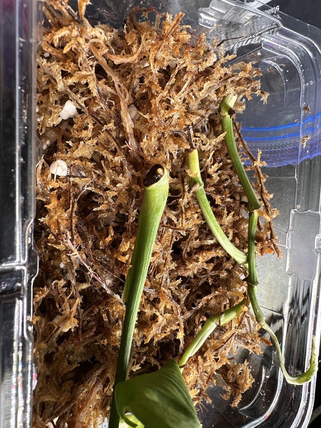 こんにちは、これはルート ノードですか?この男は約4週間以上前に始めました。発芽はおそらく1〜2週間前だったと思います。それはモンステラで、ヒートマットの上にあり、パーライトとミズゴケがその上にあります。そしてこれはゾンビリーフになる可能性が高いでしょうか?