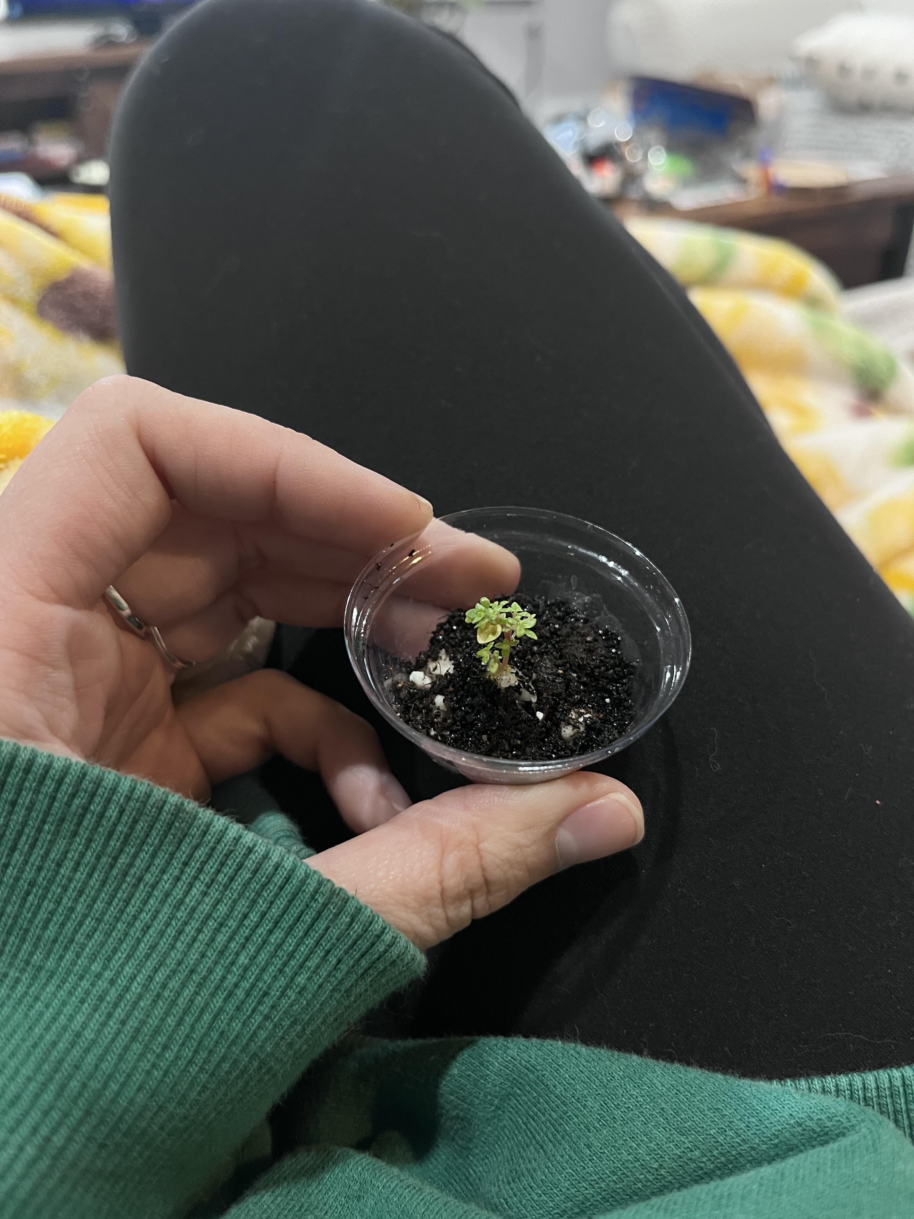 ローズから生まれました。 それは別の植物(どの種類の植物か100%覚えていません)の土の中にあり、葉は2枚だけでした。 もっと大きくなるだろうと思っていましたが、小さな小さな葉が増えただけです。ヘルプ ID!