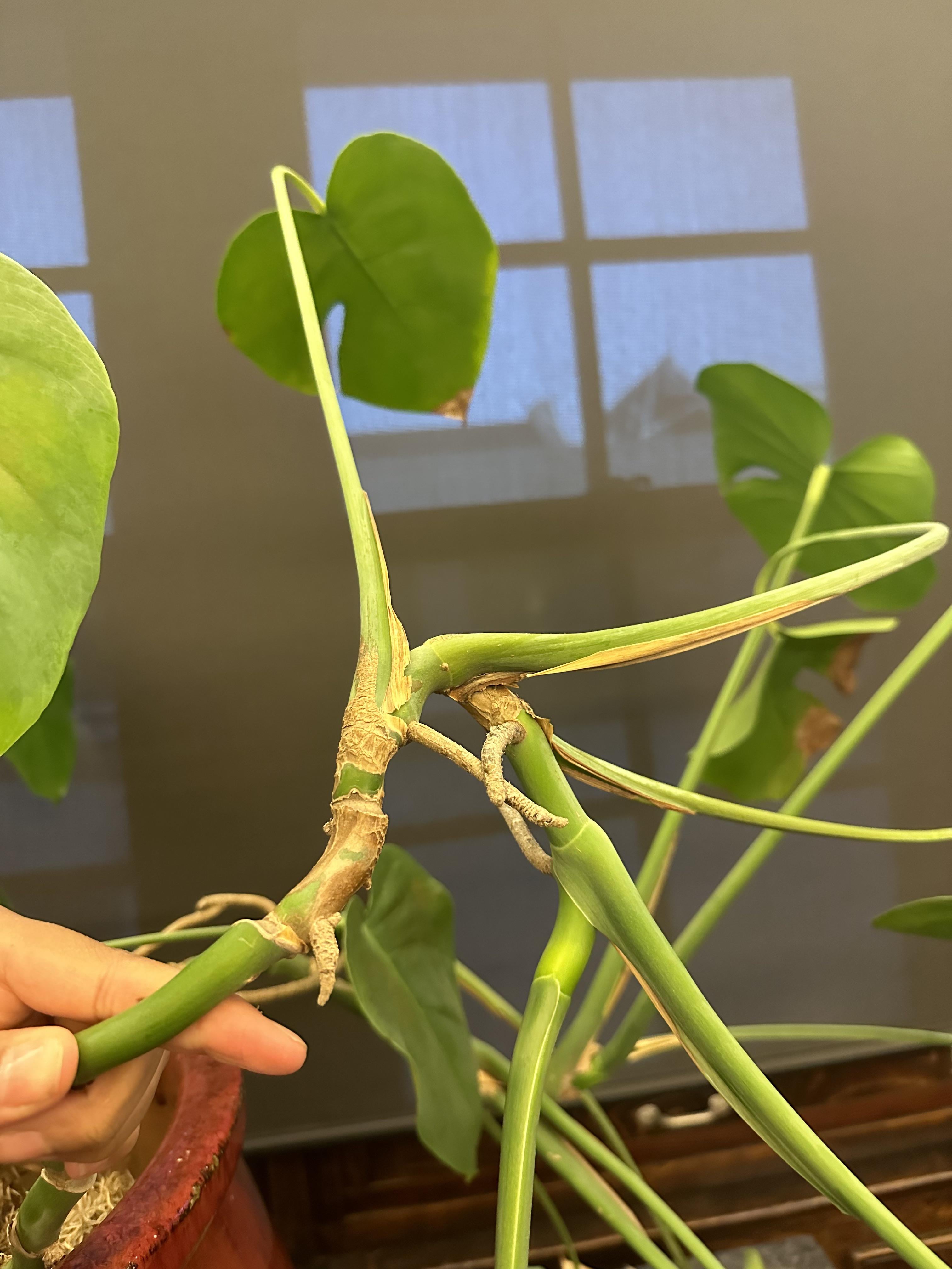 誰か助けて! グーグルで調べてみましたが、図がわかりにくくて…このモンステラを増やすにはどこを切り取ればいいのでしょうか?