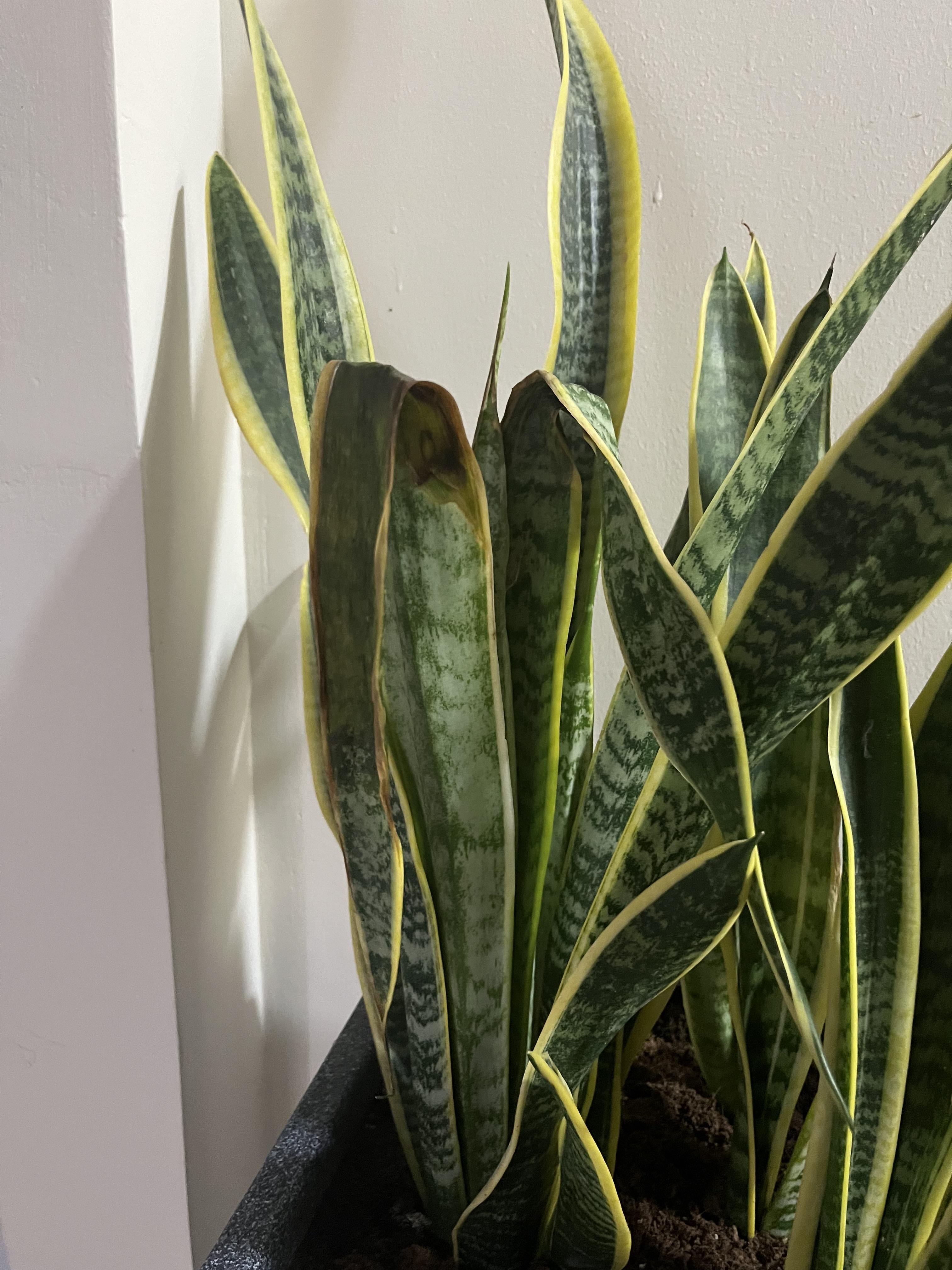ヘビ植物の葉は、しばらくの間、ぐったりと茶色に変わりつつあります。洞察が役立つのを助けてください。乾杯!