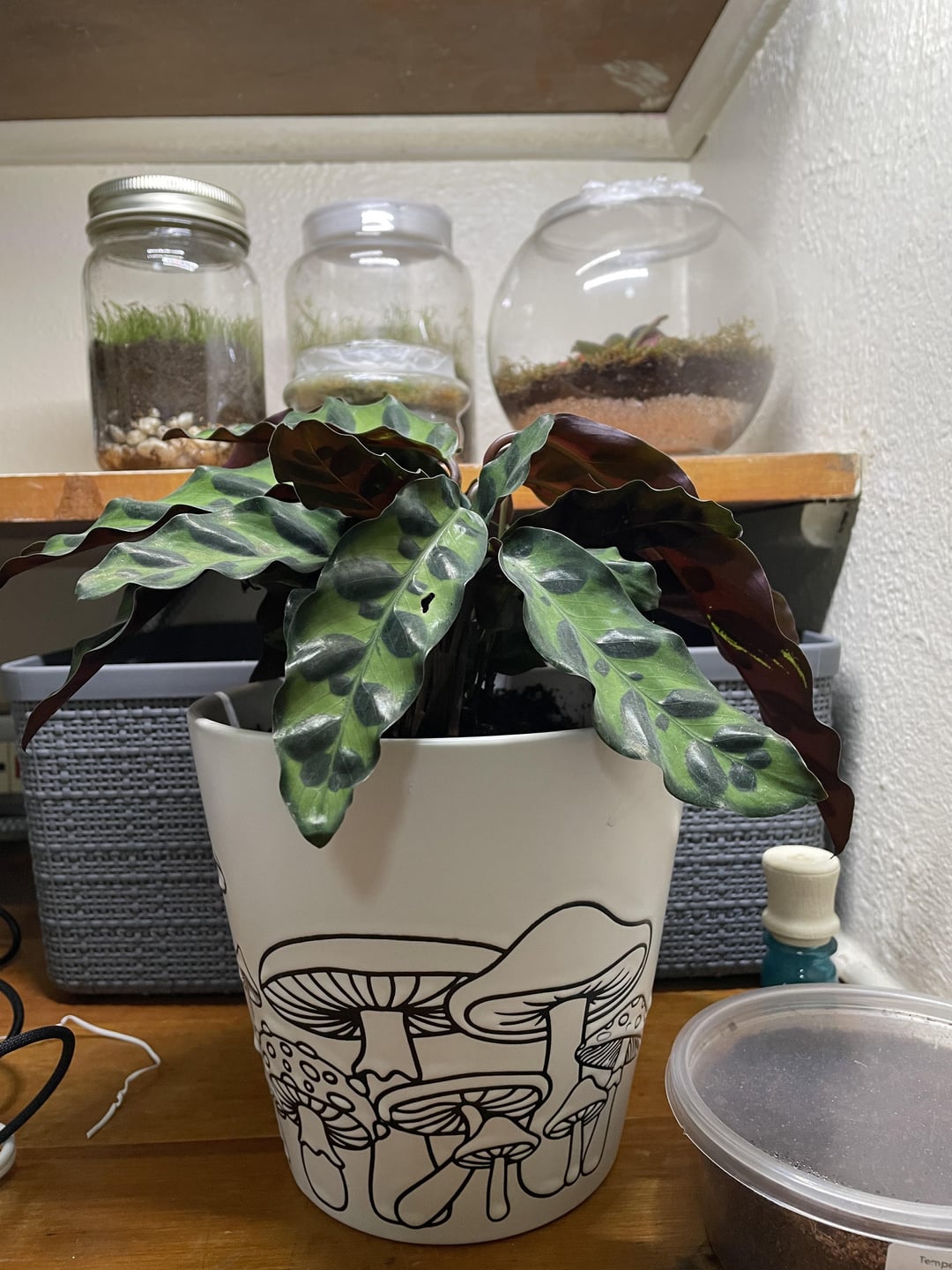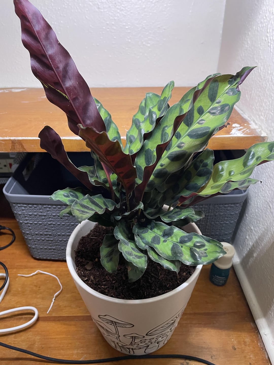 昨日、私の地元の保育園からこのかなりのガラガラヘビを手に入れました。カラテアの最初の世話をする!どんなヒントや提案をいただければ幸いです! また、葉がこんなに垂れ下がるのは普通ですか? (3番目の写真)それを元に戻すために私は何ができますか?